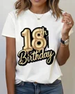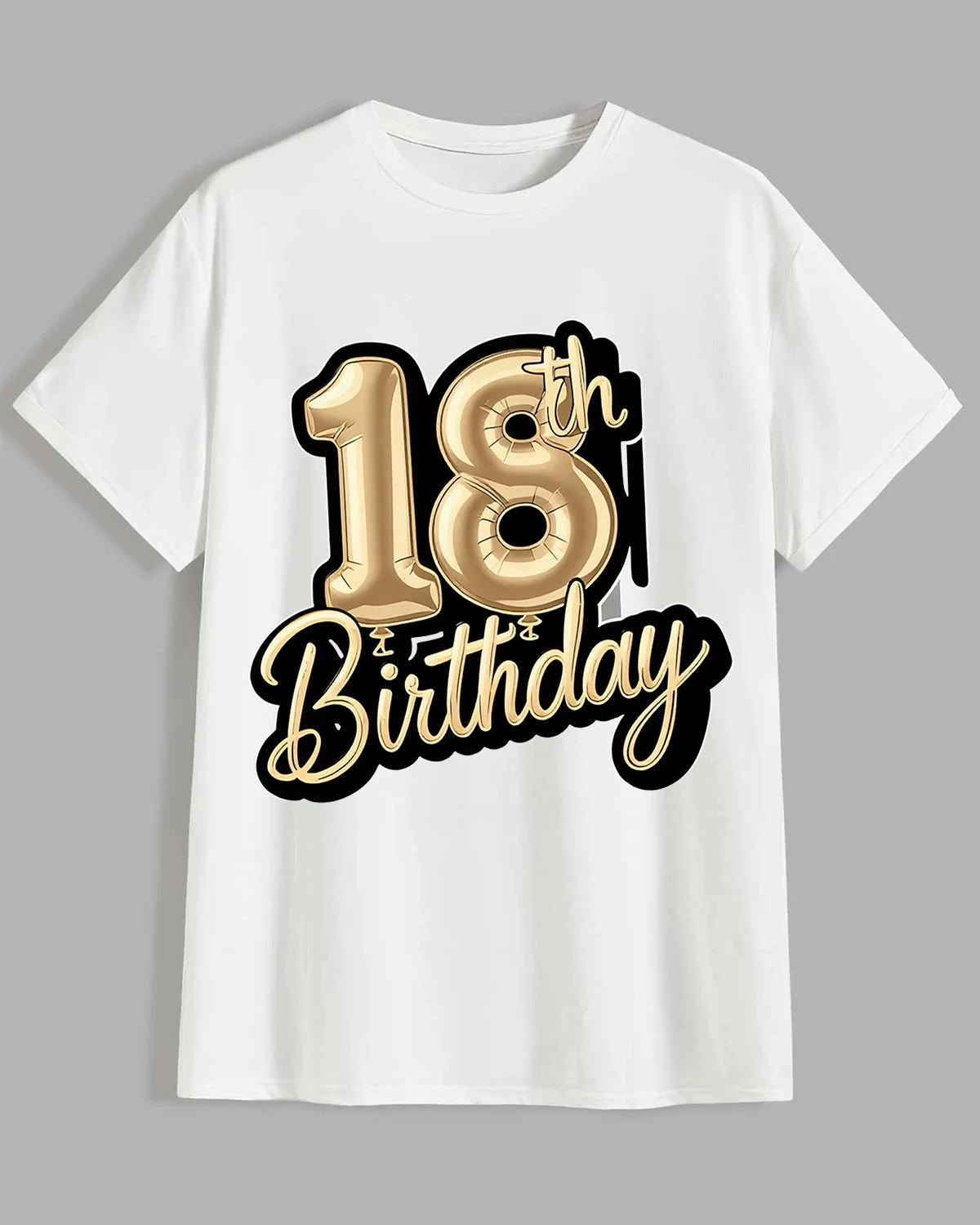 18th Birthday Gold Balloon Summer Cotton Graphic T Shirt - Casual Trendy, Short Sleeve, Soft Fabric, Comfortable Fit