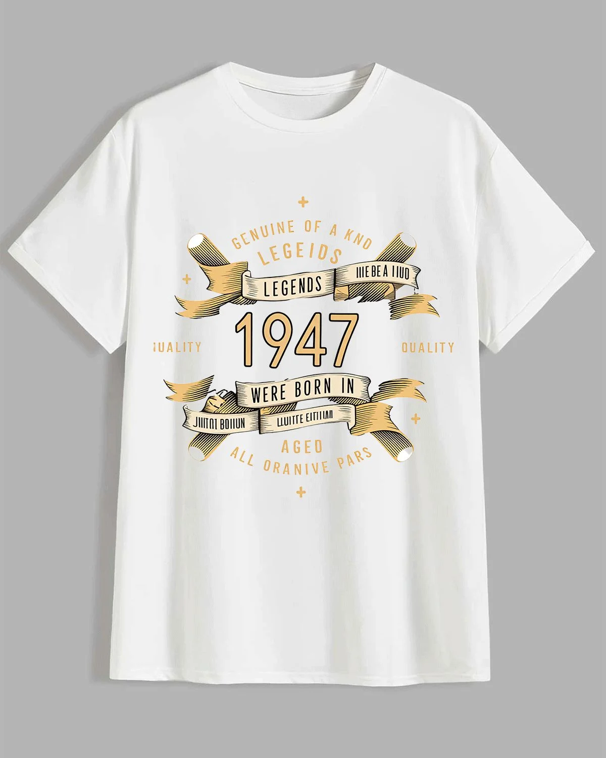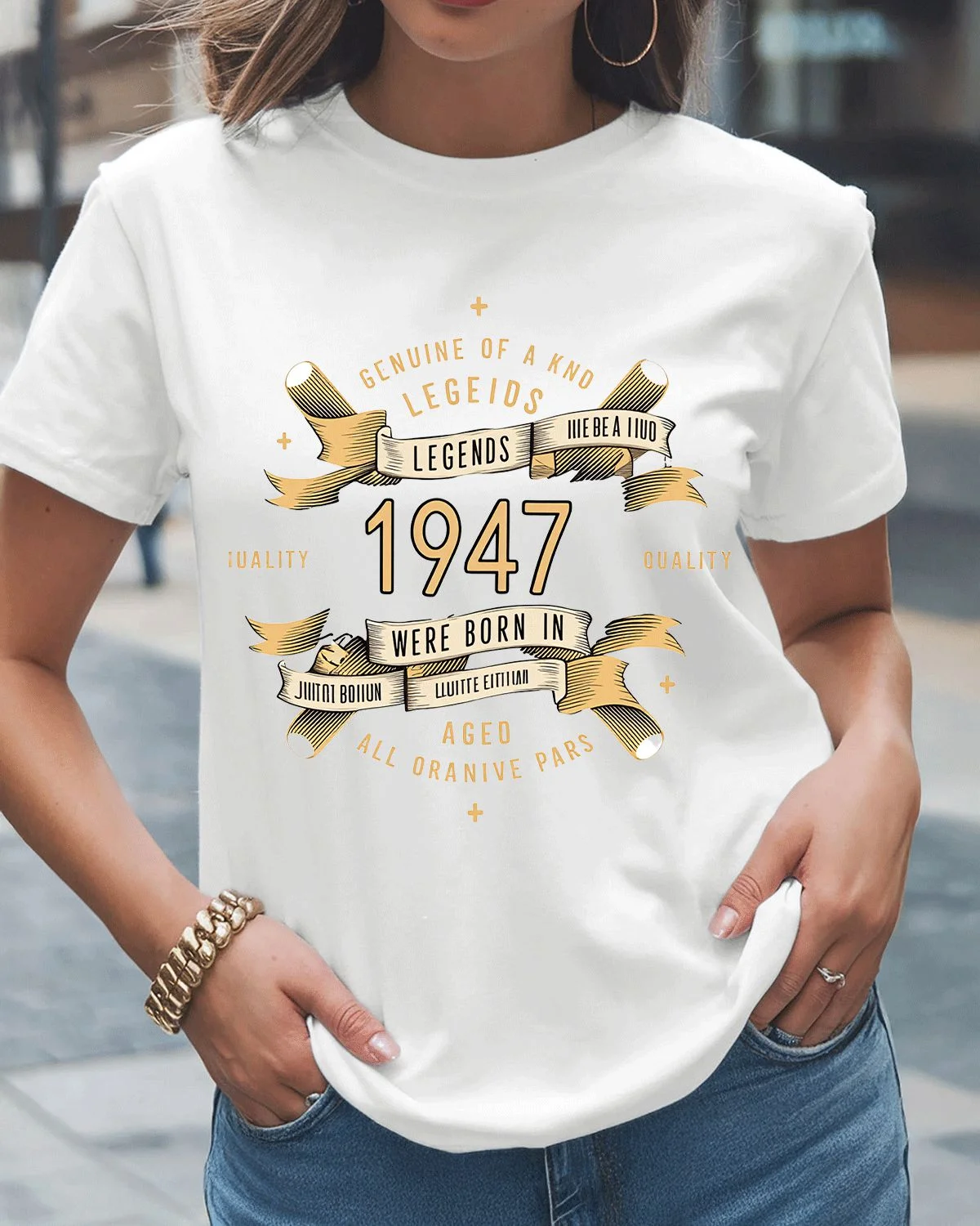 1947 Legends Were Born In Summer Cotton Graphic T Shirt - Vintage Retro, Short Sleeve, Soft Fabric, Comfortable Fit