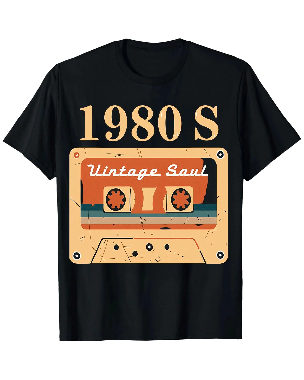 1980s Vintage Soul Cassette Summer Cotton Graphic T Shirt - Retro Cool, Short Sleeve, Soft Fabric, Comfortable Fit
