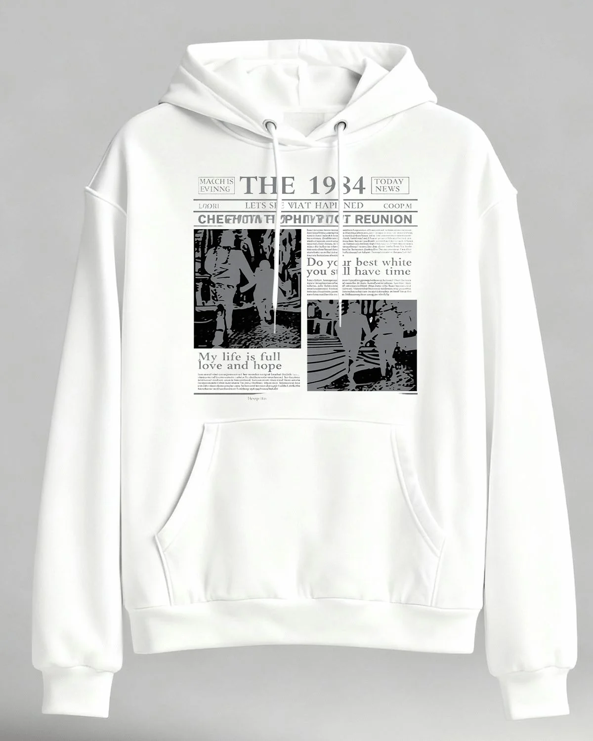 1984 Newspaper Love and Hope Cozy Graphic Hoodie for Men and Women - Vintage Retro, Long Sleeve, Soft Fabric, Comfortable Fit
