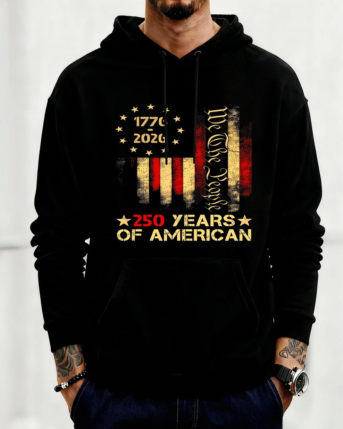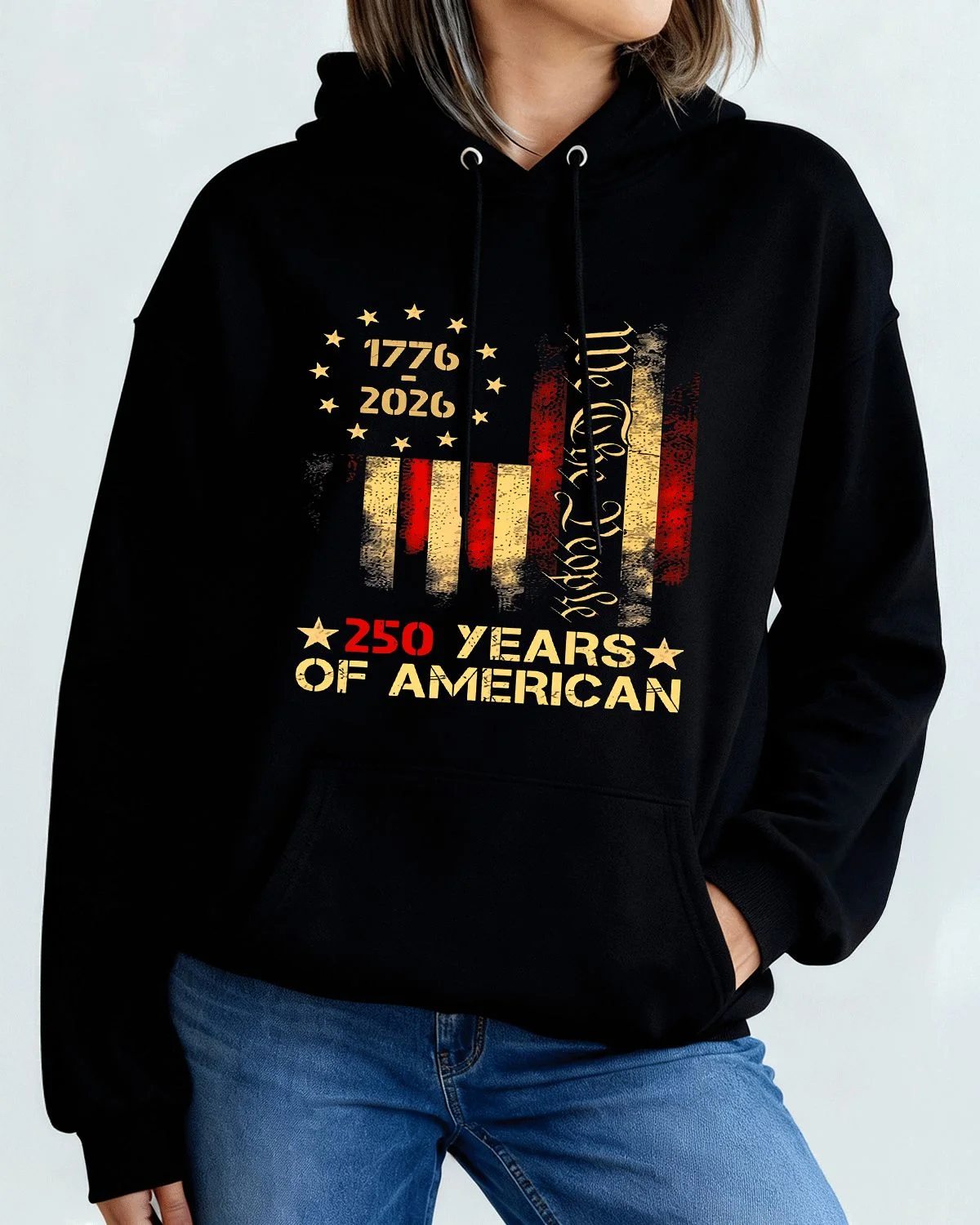 2026 New Year 250 Years of American Flag We The People Cozy Graphic Hoodie for Men and Women - Vintage Classic, Long Sleeve, Soft Fabric, Comfortable Fit