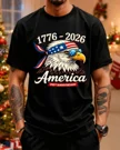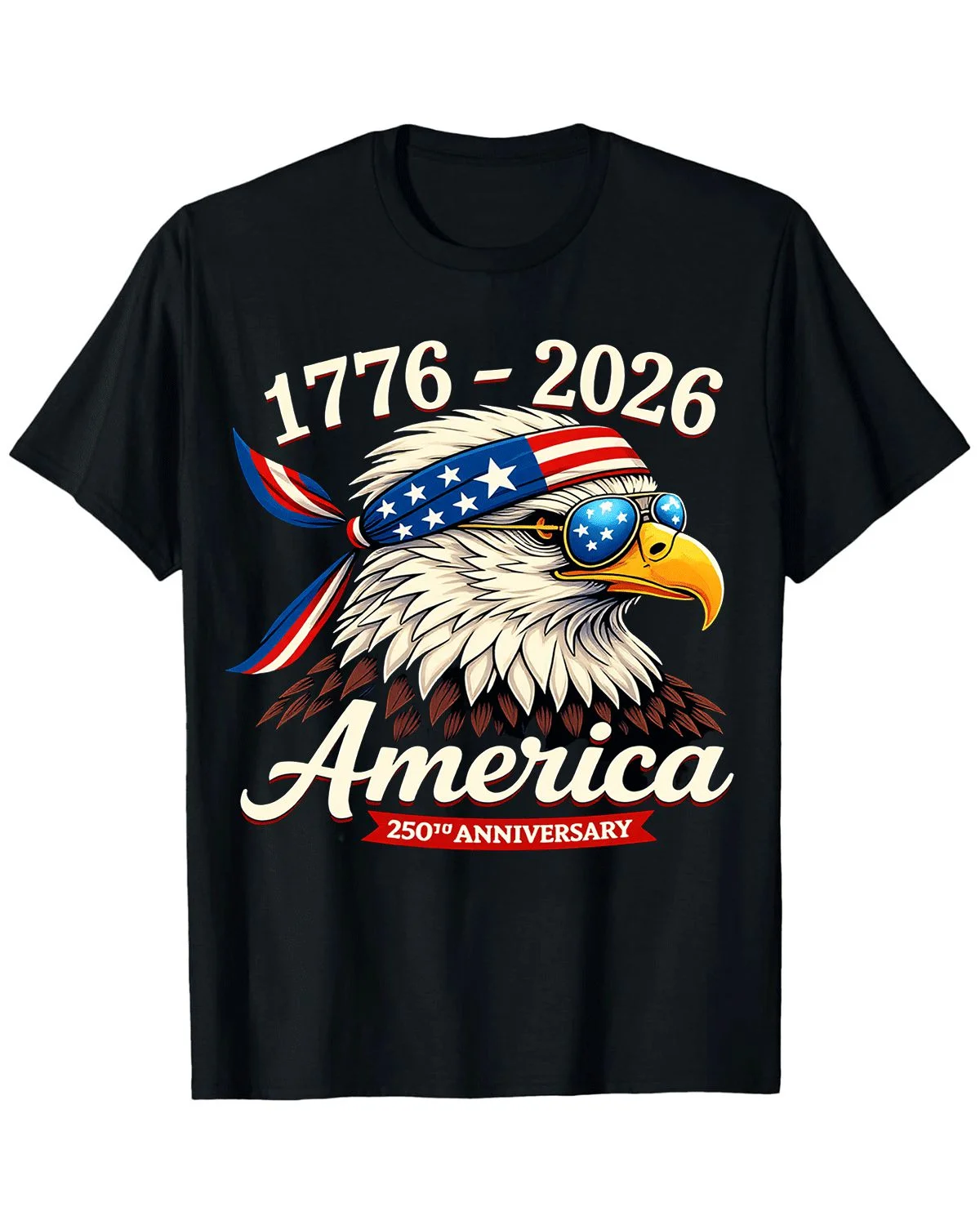 2026 New Year America Eagle 250th Anniversary Summer Cotton Graphic T Shirt - Vintage Patriotic, Short Sleeve, Soft Fabric, Comfortable Fit