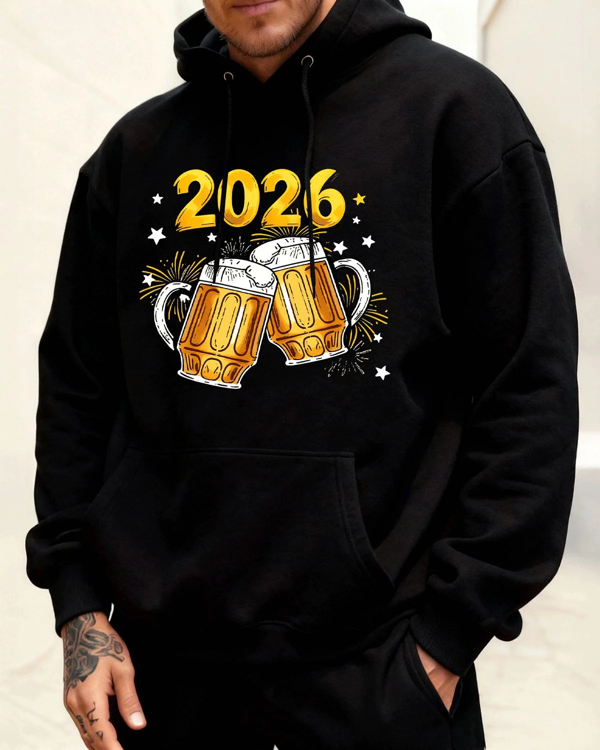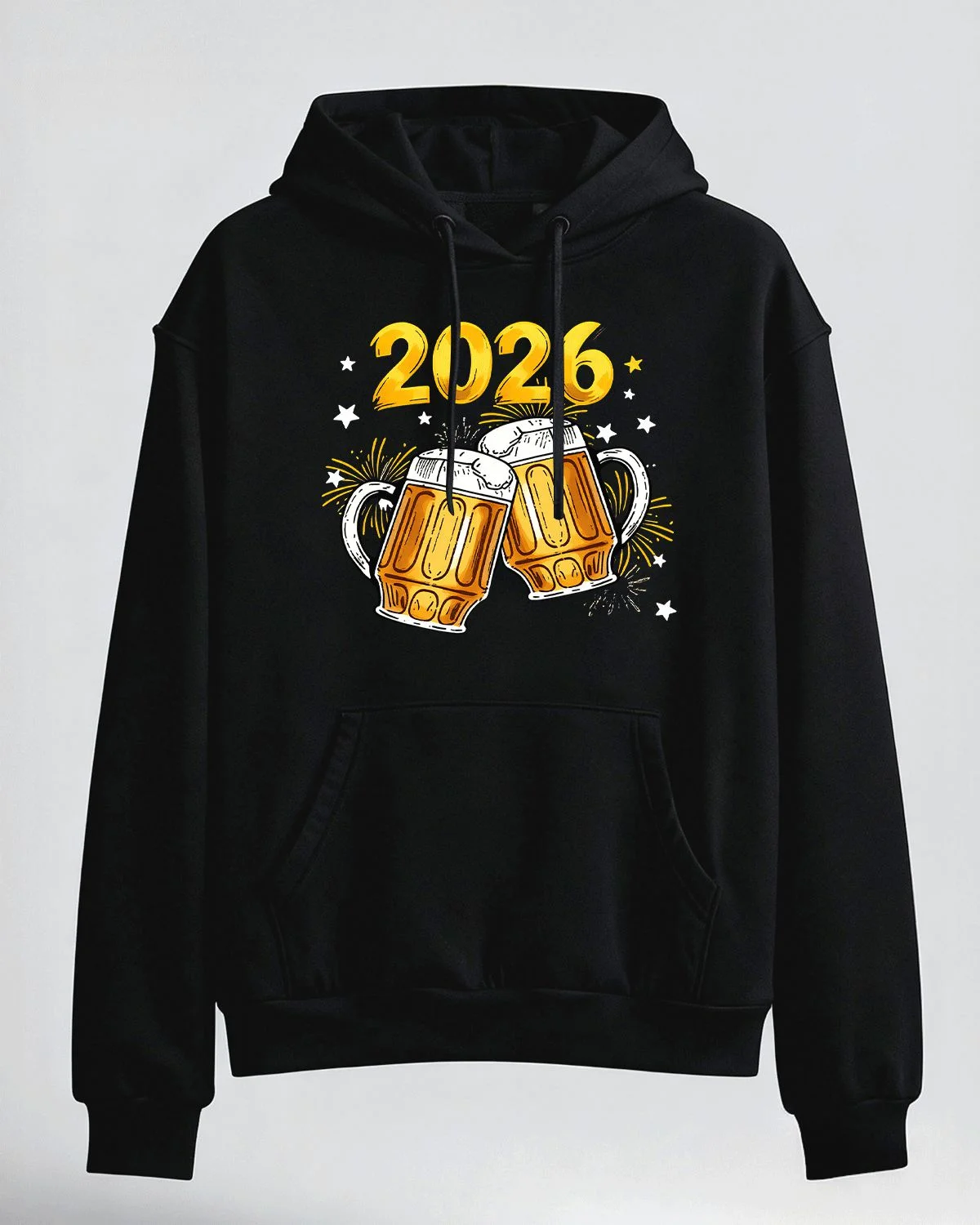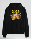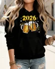 2026 New Year Beer Mugs and Fireworks Cozy Graphic Hoodie for Men and Women - Casual Vintage, Long Sleeve, Soft Fabric, Comfortable Fit