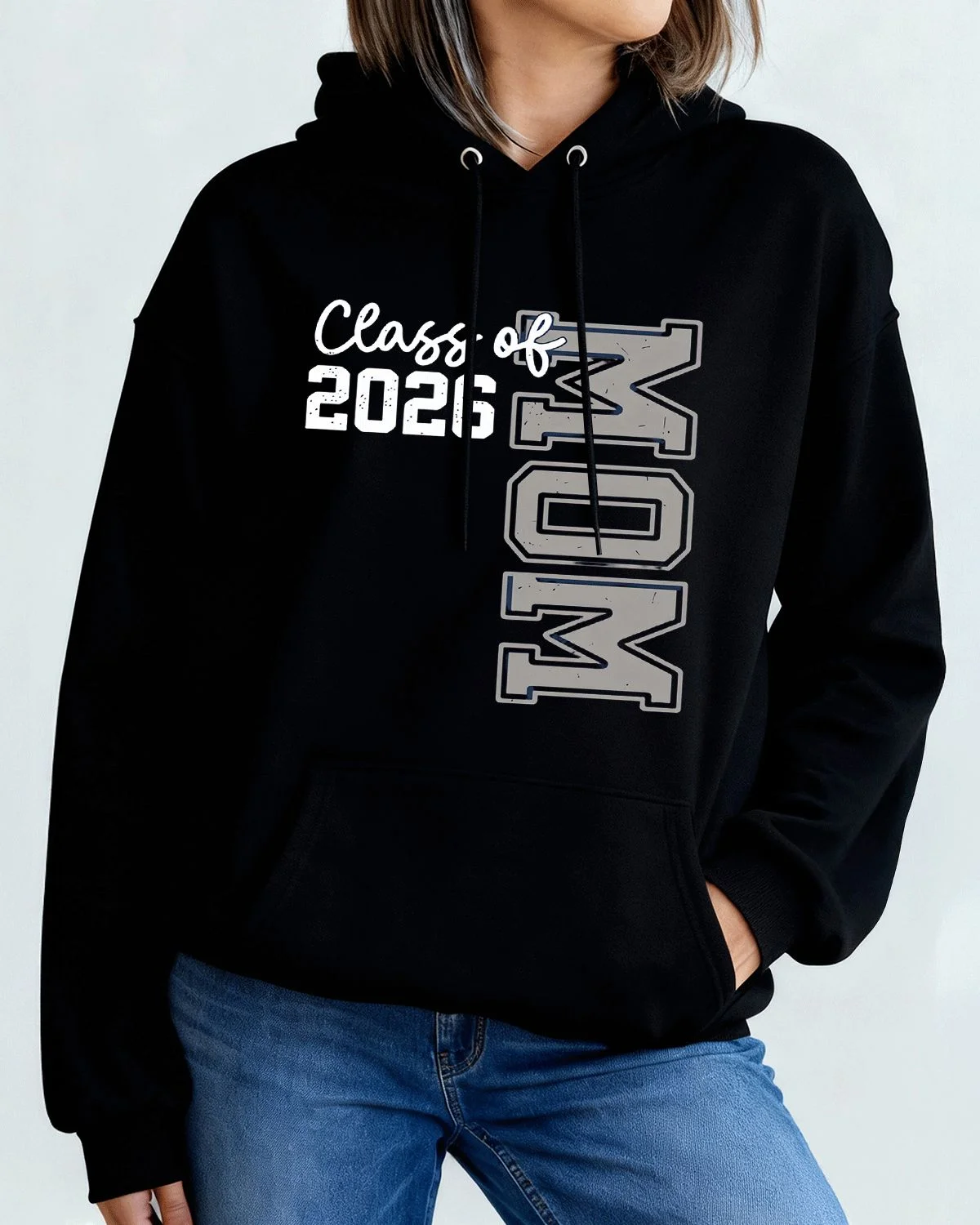 2026 New Year Class of Mom Cozy Graphic Hoodie for Men and Women - Casual Vintage, Long Sleeve, Soft Fabric, Comfortable Fit