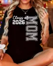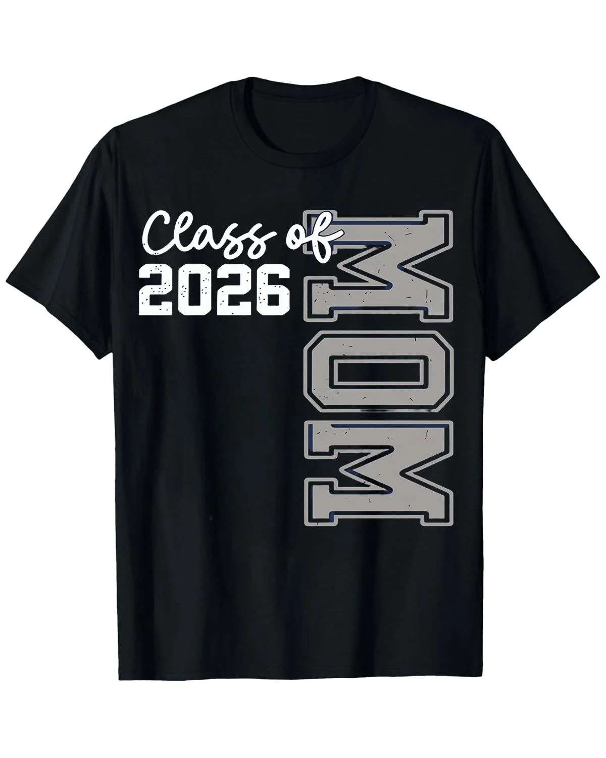 2026 New Year Class of Mom Summer Cotton Graphic T Shirt - Casual Vintage, Short Sleeve, Soft Fabric, Comfortable Fit