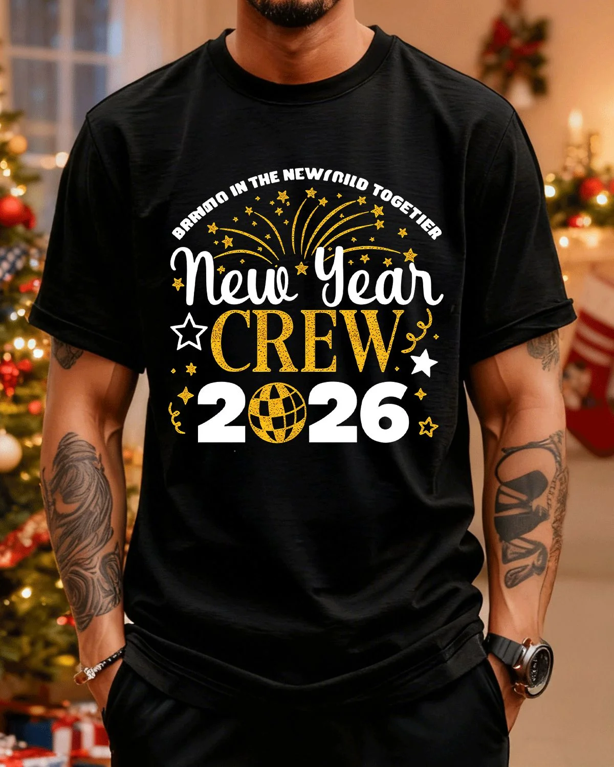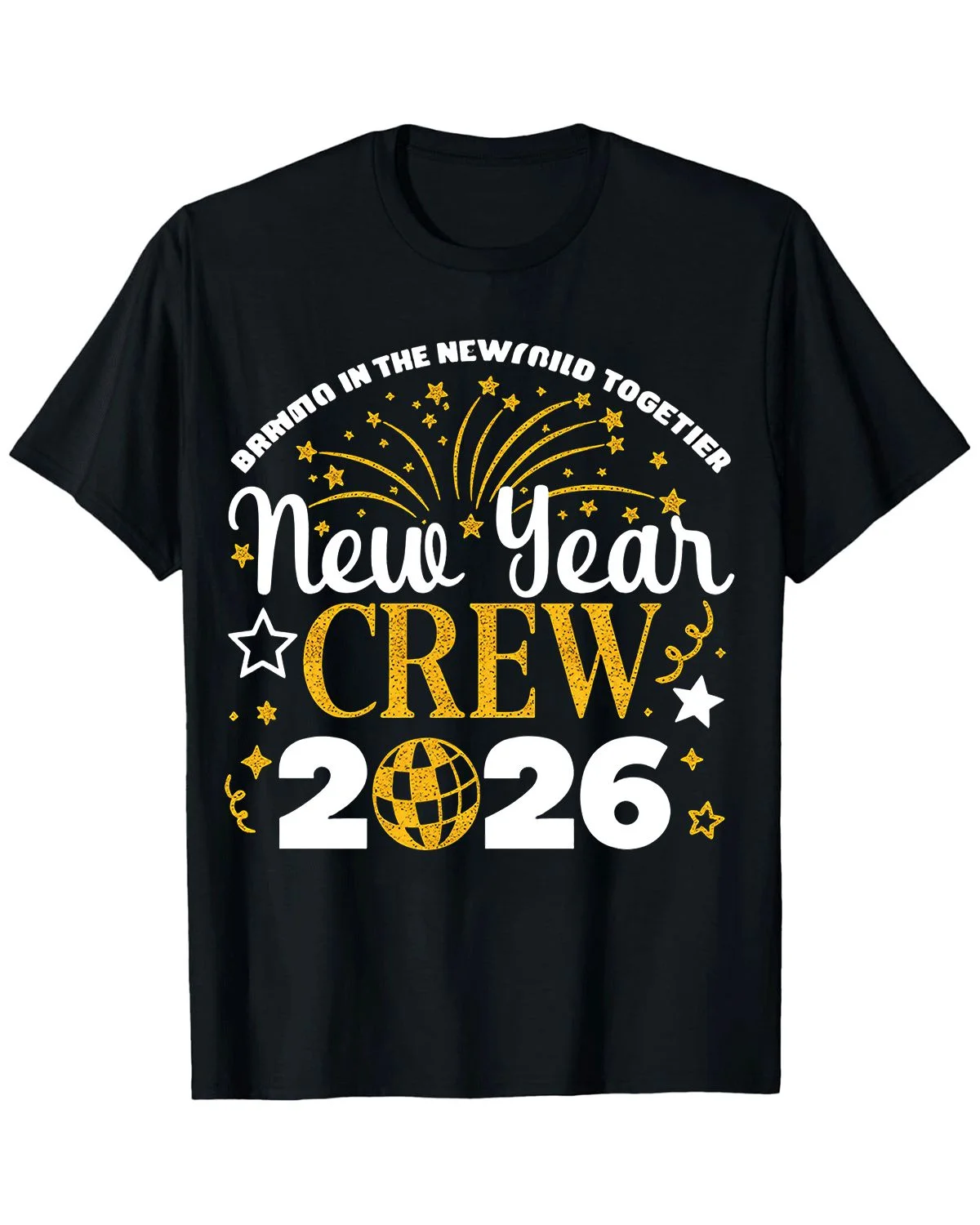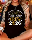 2026 New Year Crew Fireworks and Stars Summer Cotton Graphic T Shirt - Casual Vintage, Short Sleeve, Soft Fabric, Comfortable Fit