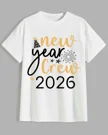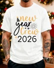2026 New Year Crew with Party Hat and Fireworks Summer Cotton Graphic T Shirt - Casual Vintage, Short Sleeve, Soft Fabric, Comfortable Fit