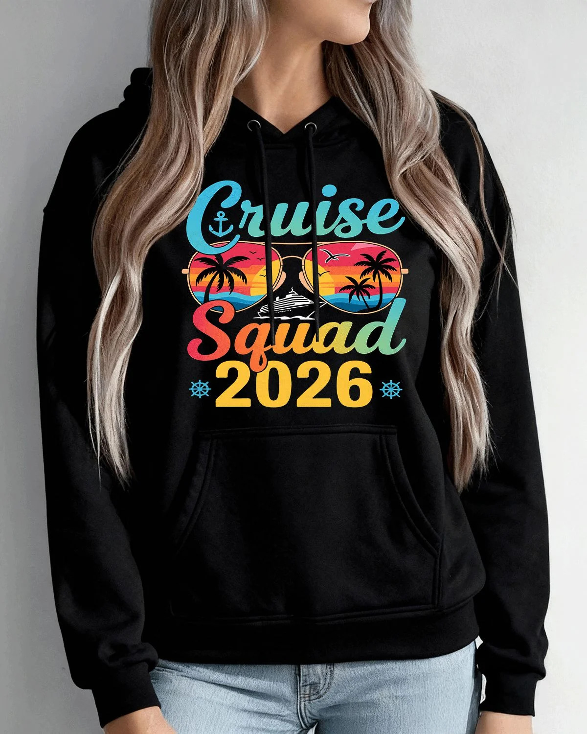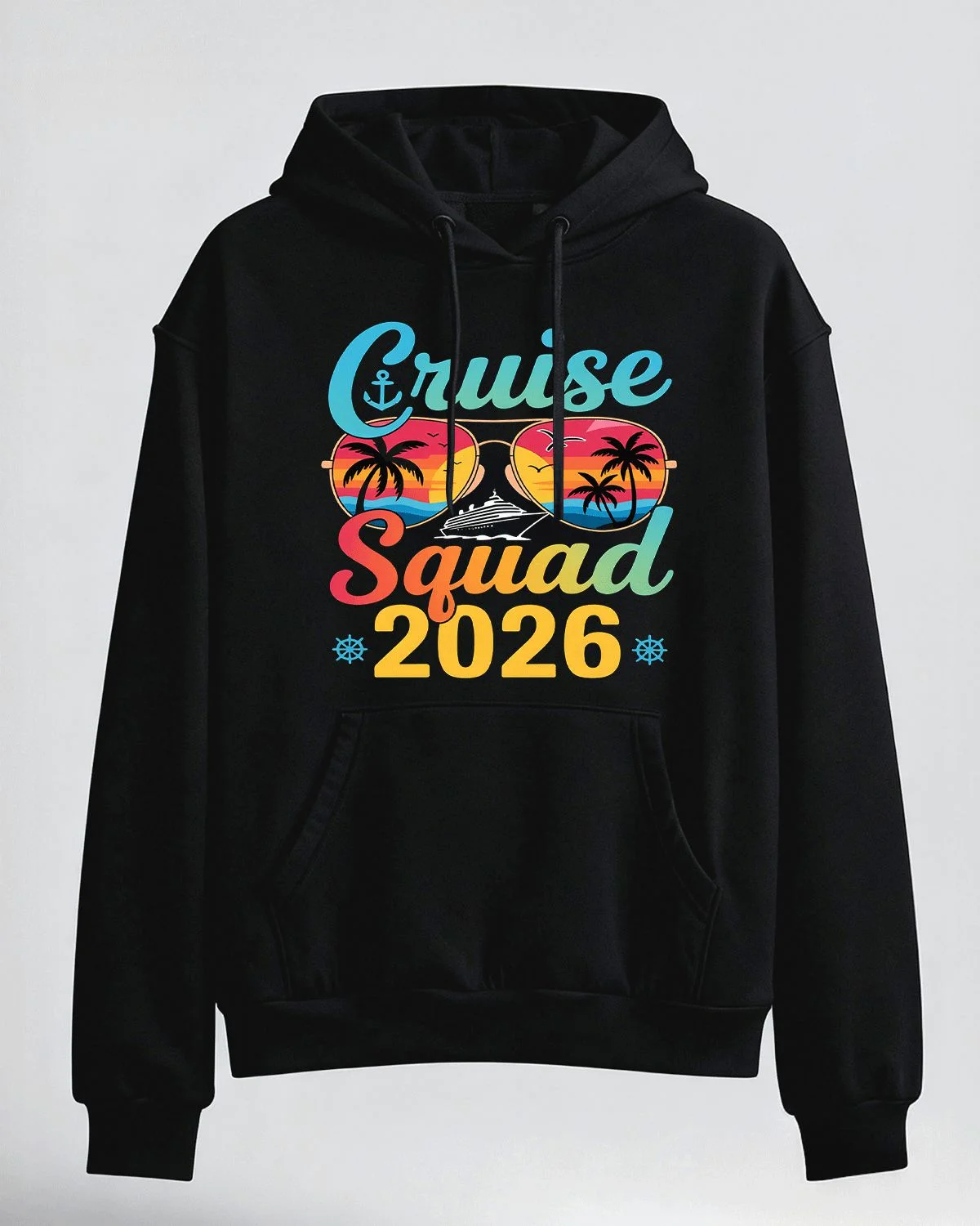2026 New Year Cruise Squad Sunset Cozy Graphic Hoodie for Men and Women - Casual Retro, Long Sleeve, Soft Fabric, Comfortable Fit