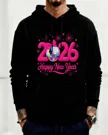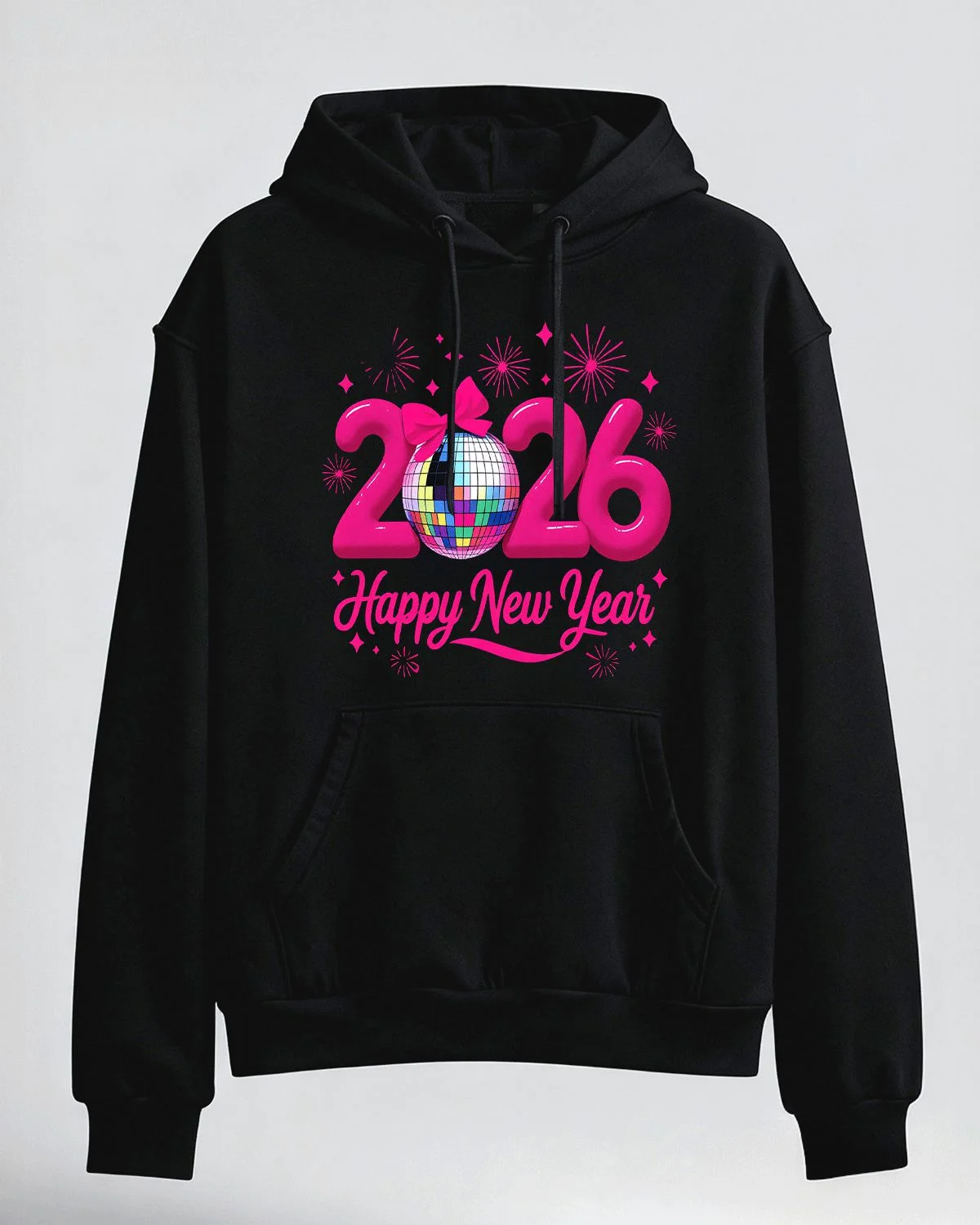 2026 New Year Disco Ball and Fireworks Cozy Graphic Hoodie for Men and Women - Trendy Retro, Long Sleeve, Soft Fabric, Comfortable Fit