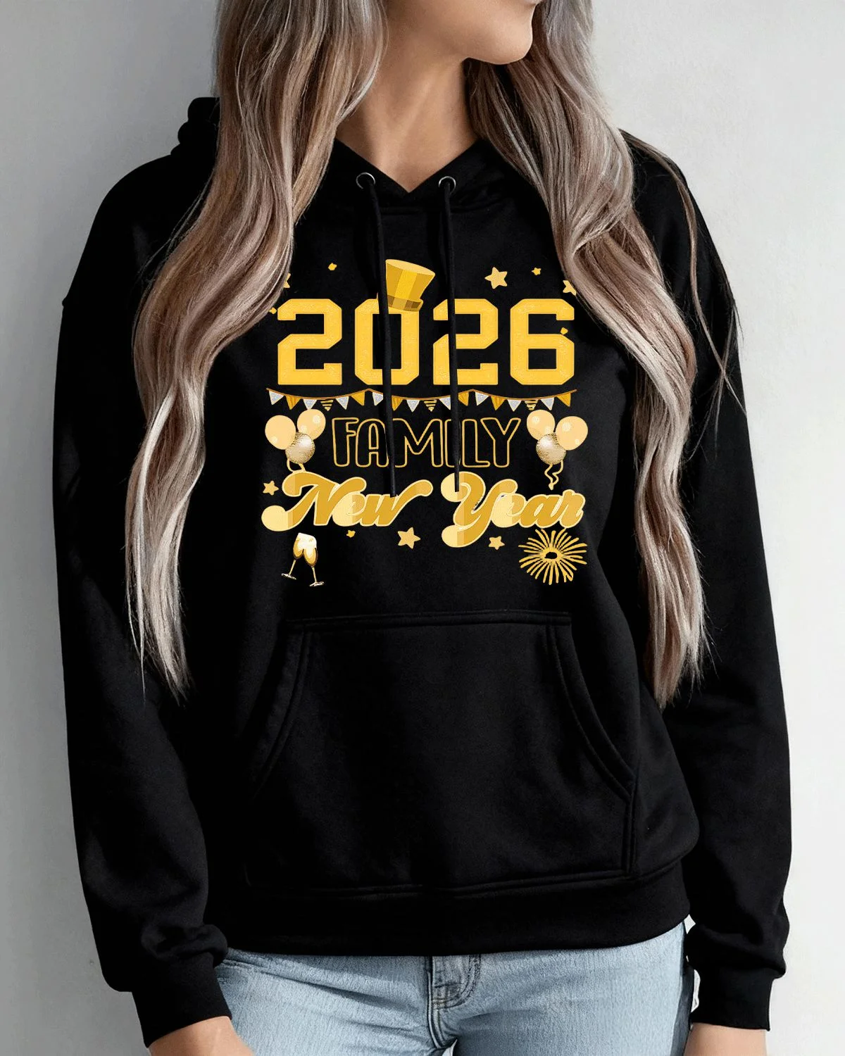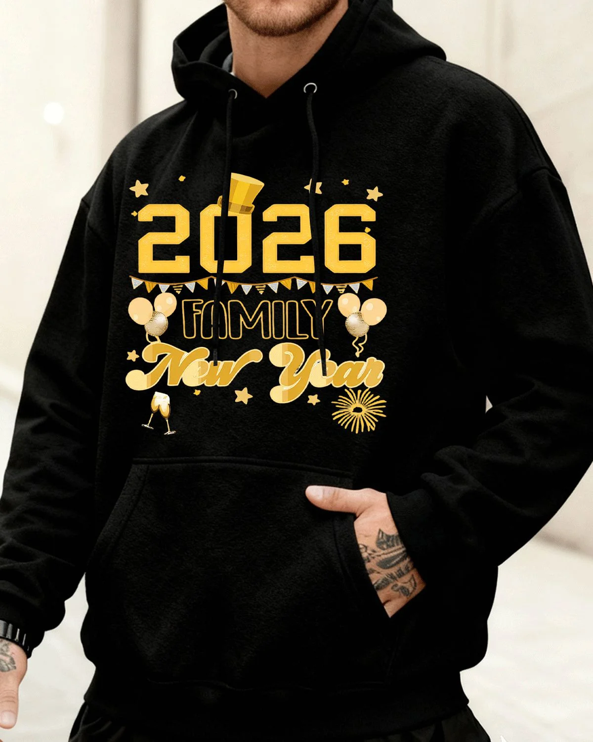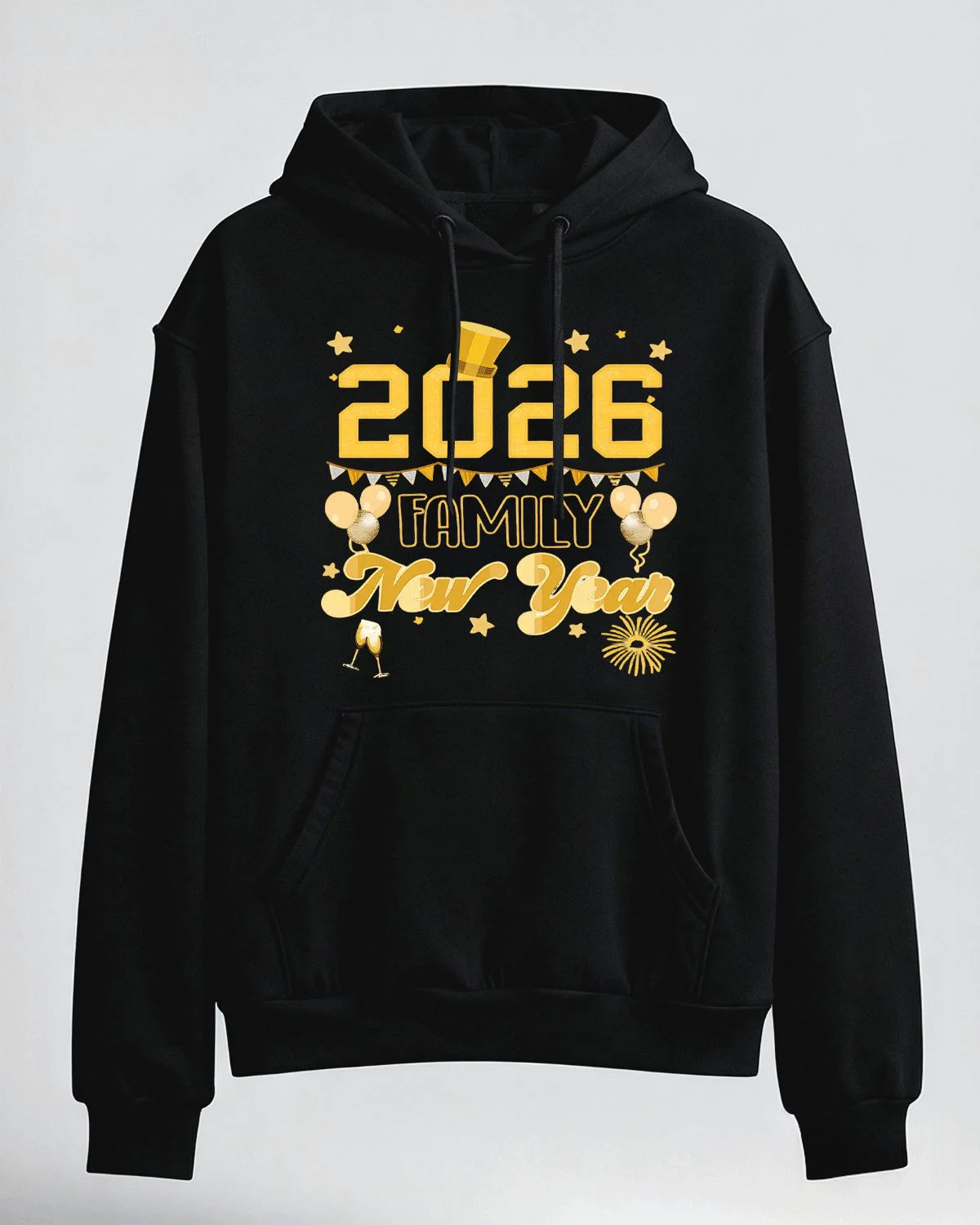 2026 New Year Family Celebration Cozy Graphic Hoodie for Men and Women - Casual Vintage, Long Sleeve, Soft Fabric, Comfortable Fit