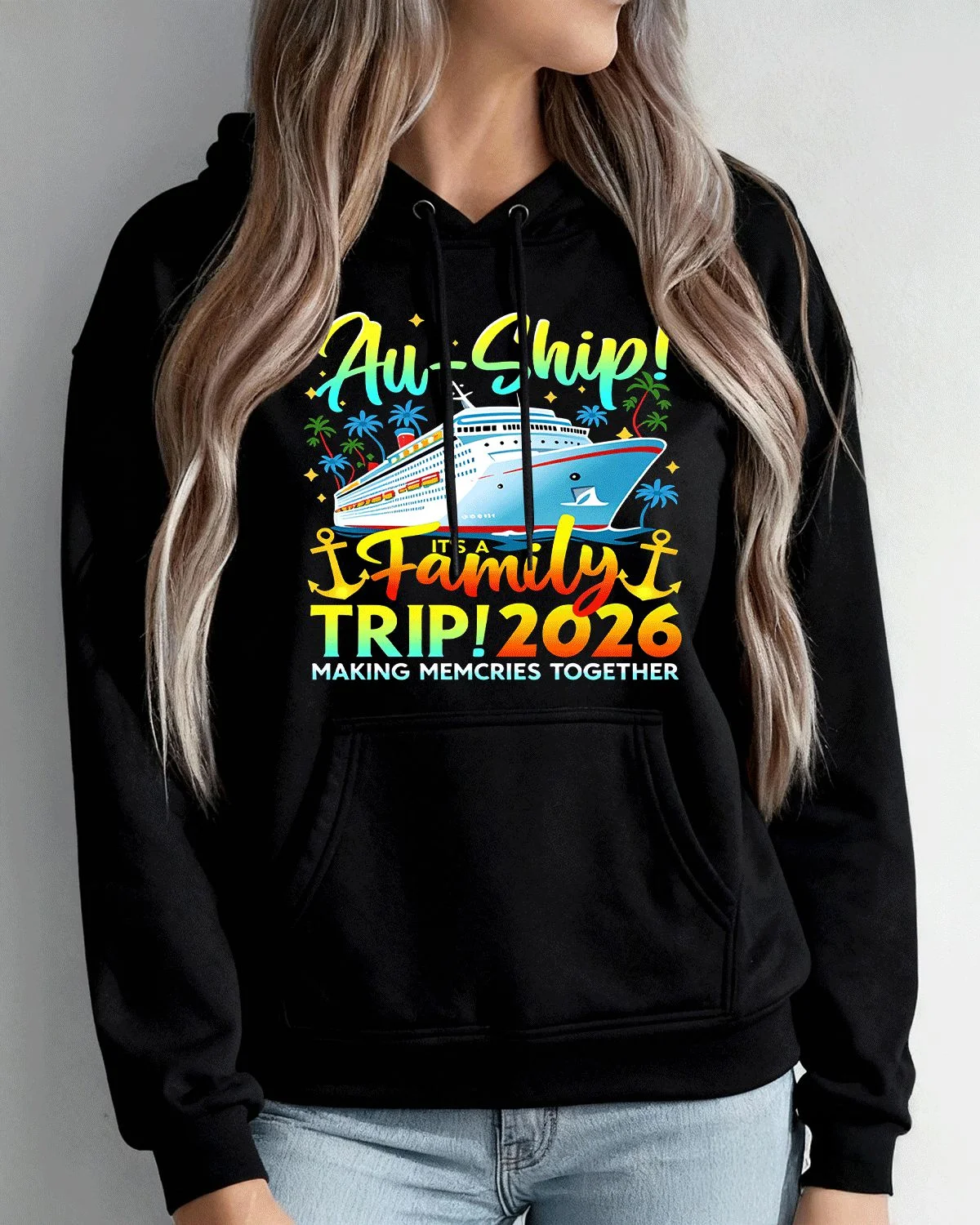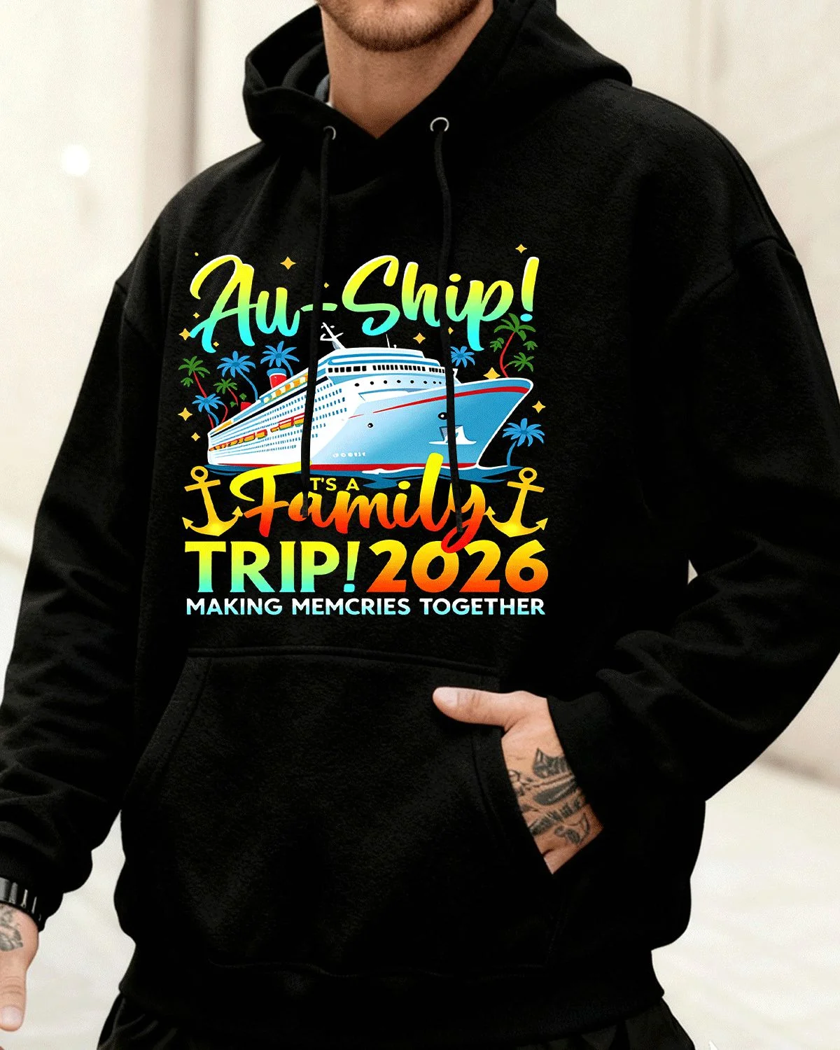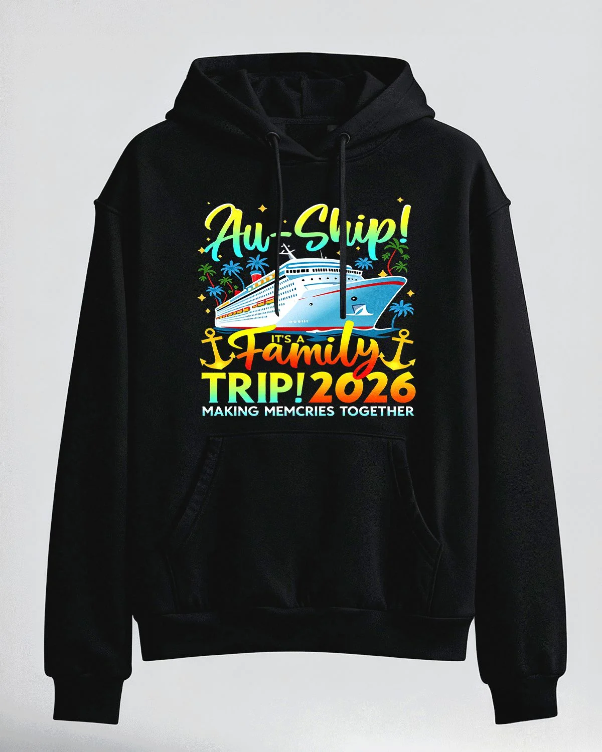 2026 New Year Family Cruise Trip Cozy Graphic Hoodie for Men and Women - Casual Retro, Long Sleeve, Soft Fabric, Comfortable Fit