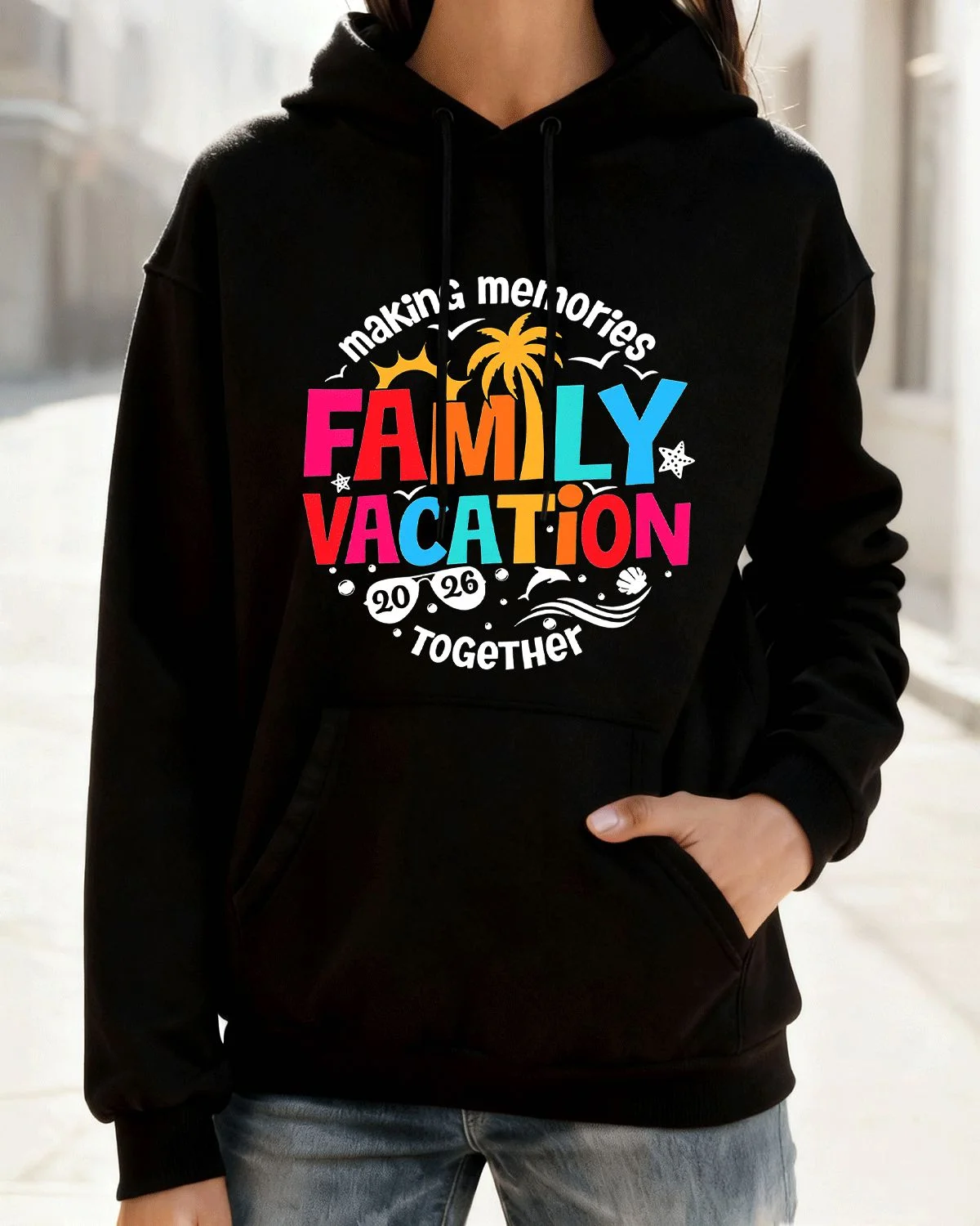 2026 New Year Family Vacation Making Memories Cozy Graphic Hoodie for Men and Women - Casual Retro, Long Sleeve, Soft Fabric, Comfortable Fit