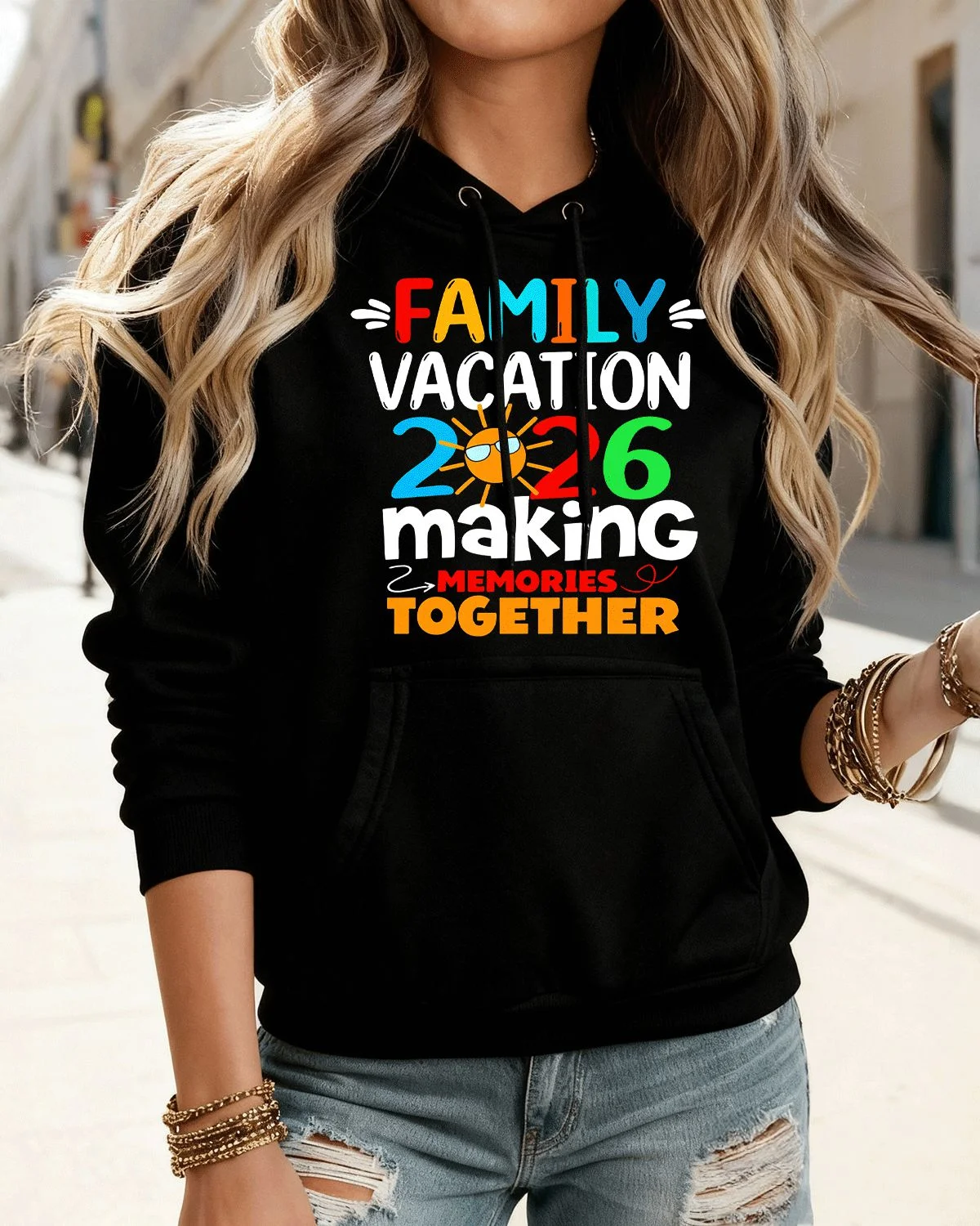 2026 New Year Family Vacation Making Memories Together Cozy Graphic Hoodie for Men and Women - Casual Retro, Long Sleeve, Soft Fabric, Comfortable Fit