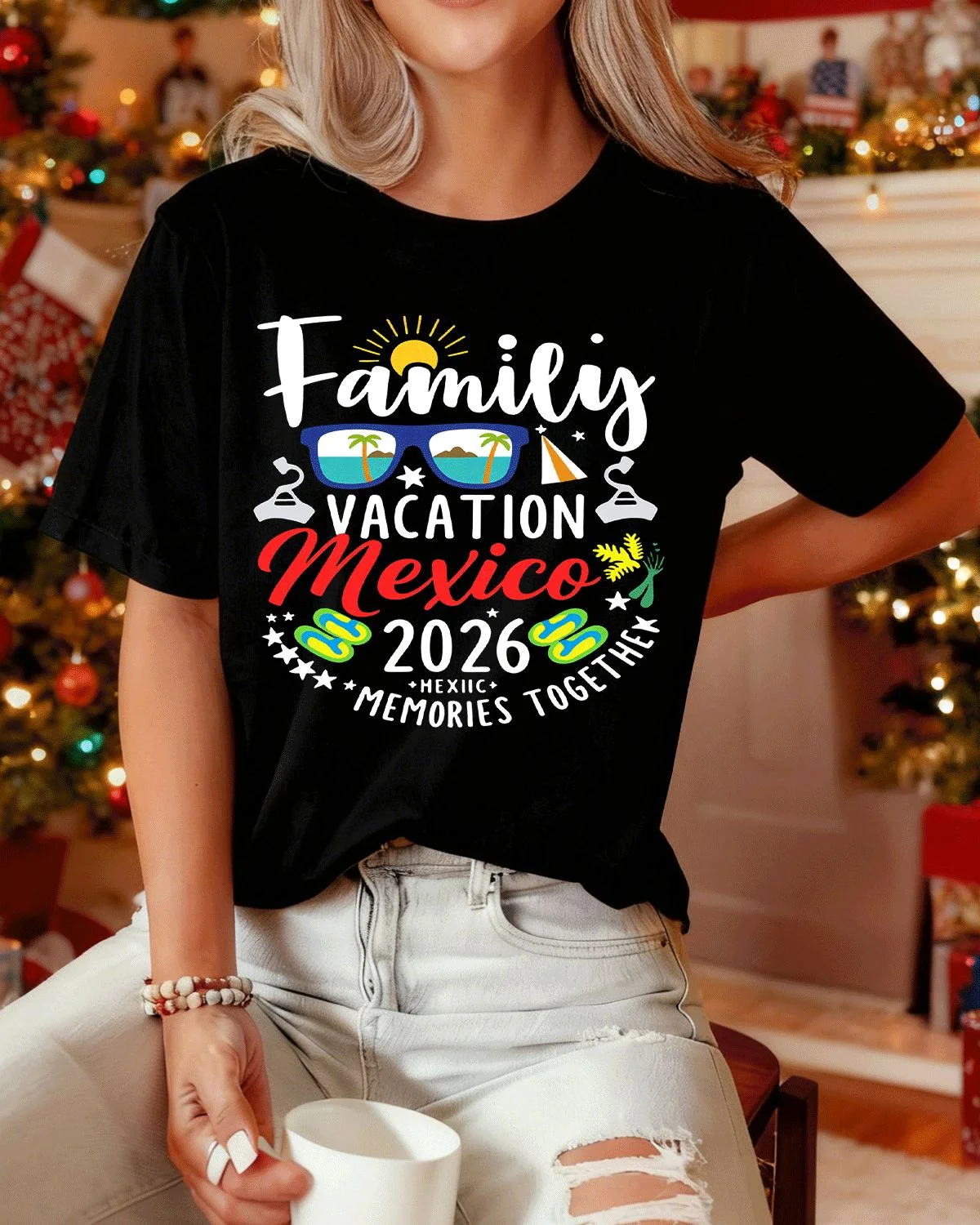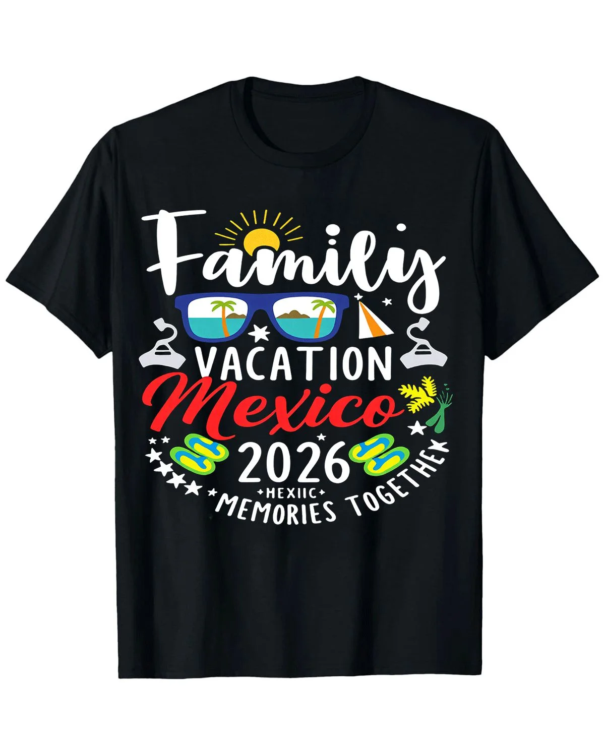2026 New Year Family Vacation Mexico Summer Cotton Graphic T Shirt - Casual Vintage, Short Sleeve, Soft Fabric, Comfortable Fit