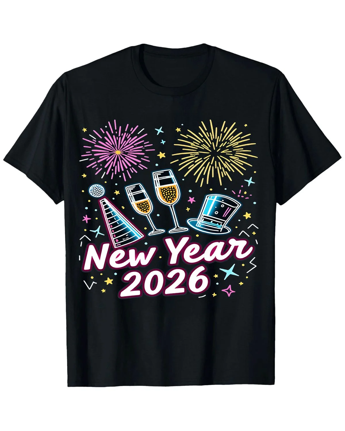 Christmas Chickens and Reindeer in Santa Hats Summer Cotton Graphic T Shirt - Funny Retro, Short Sleeve, Soft Fabric, Comfortable Fit