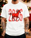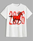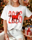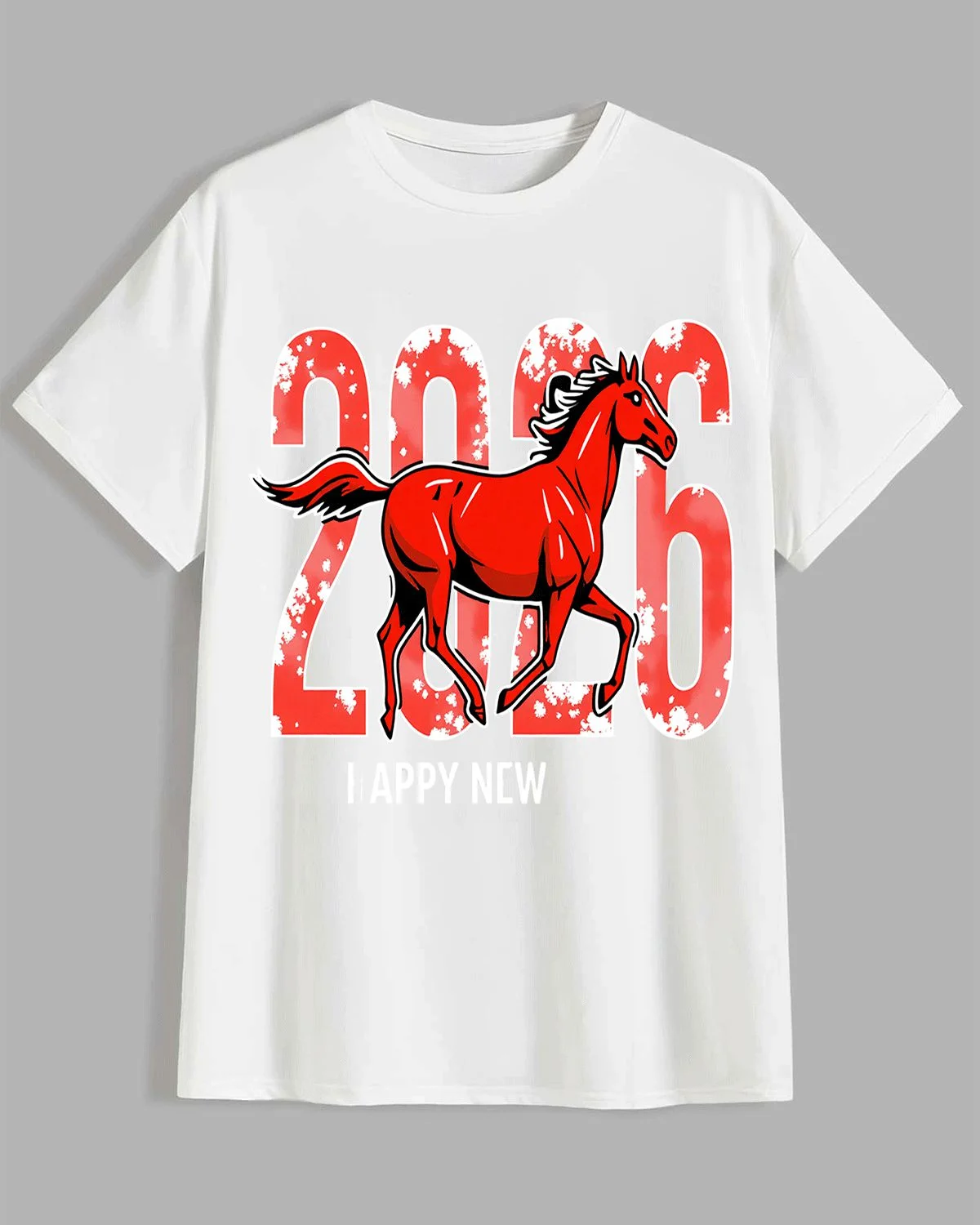 2026 New Year Happy Red Horse Summer Cotton Graphic T Shirt - Casual Vintage, Short Sleeve, Soft Fabric, Comfortable Fit