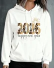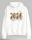 2026 New Year Hello Happy Leopard Print Cozy Graphic Hoodie for Men and Women - Trendy Chic, Long Sleeve, Soft Fabric, Comfortable Fit