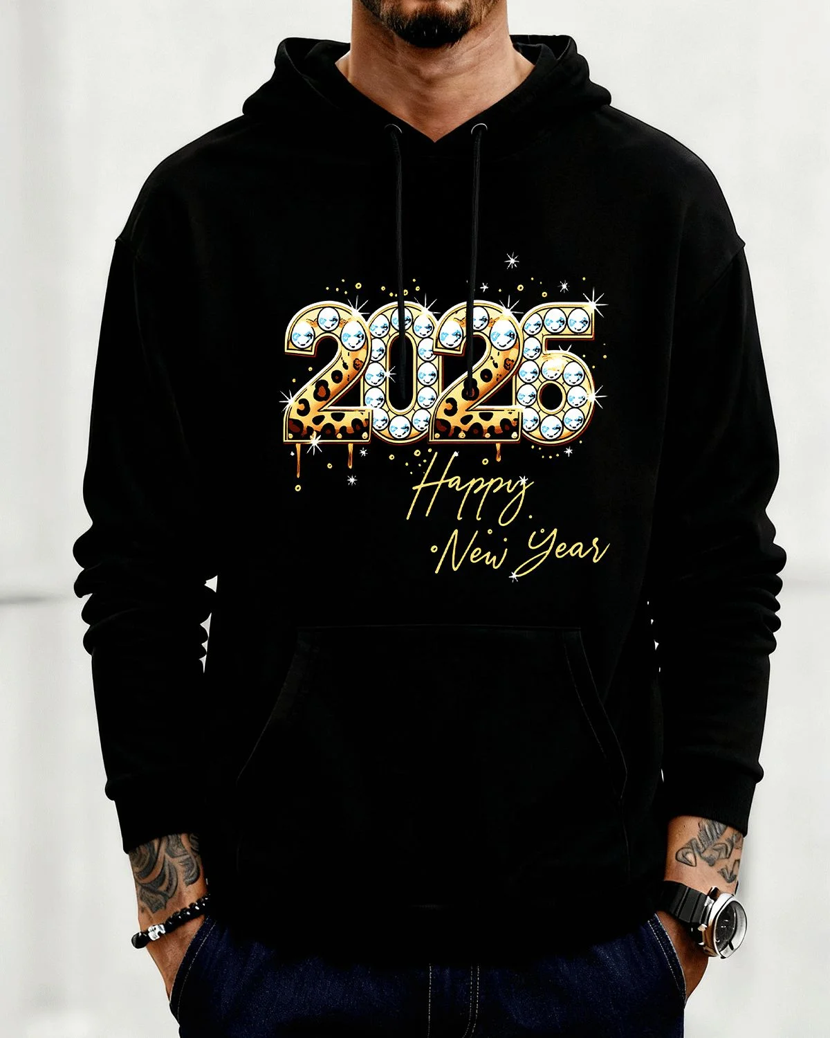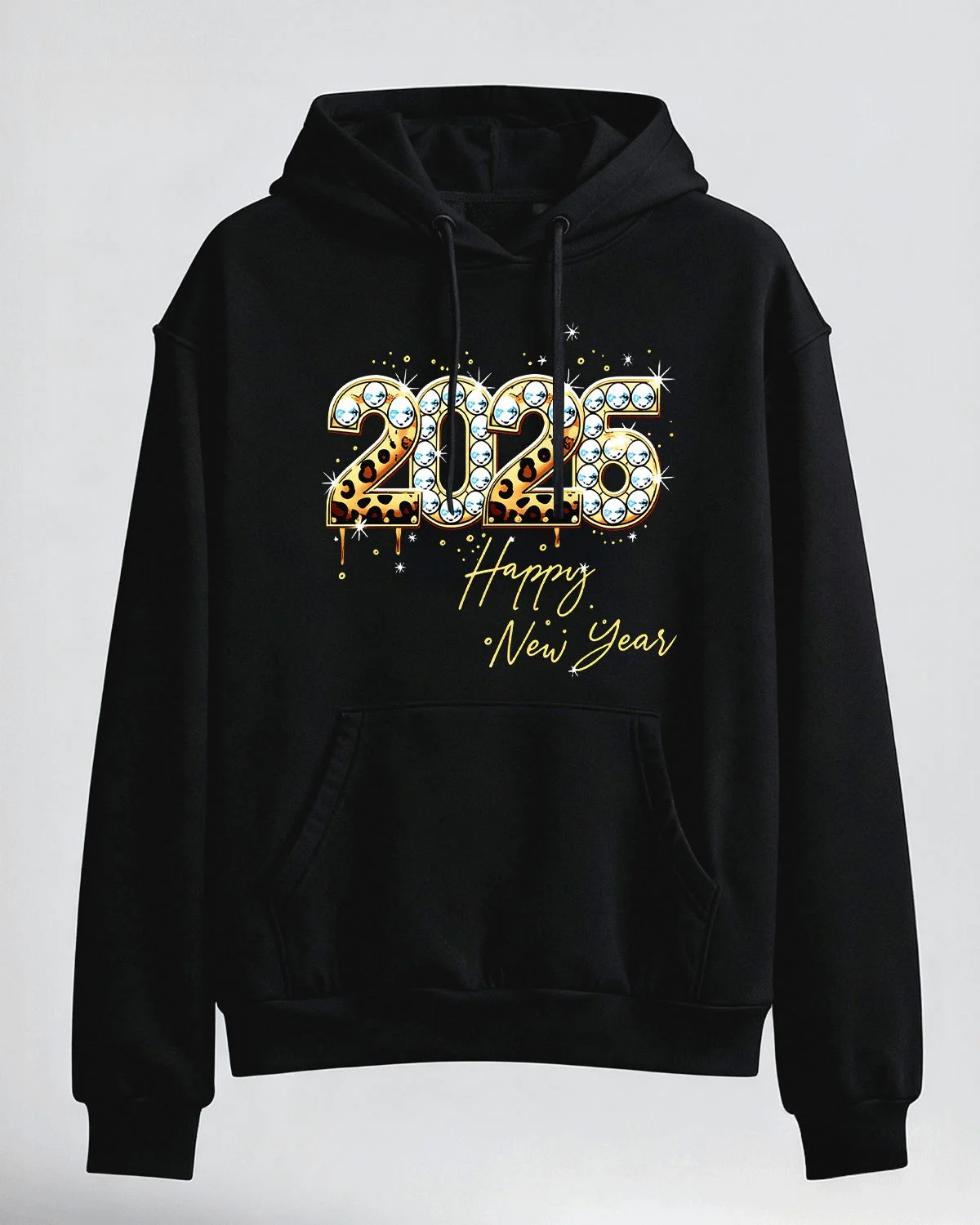 2026 New Year Leopard Print with Diamonds Cozy Graphic Hoodie for Men and Women - Trendy Chic, Long Sleeve, Soft Fabric, Comfortable Fit