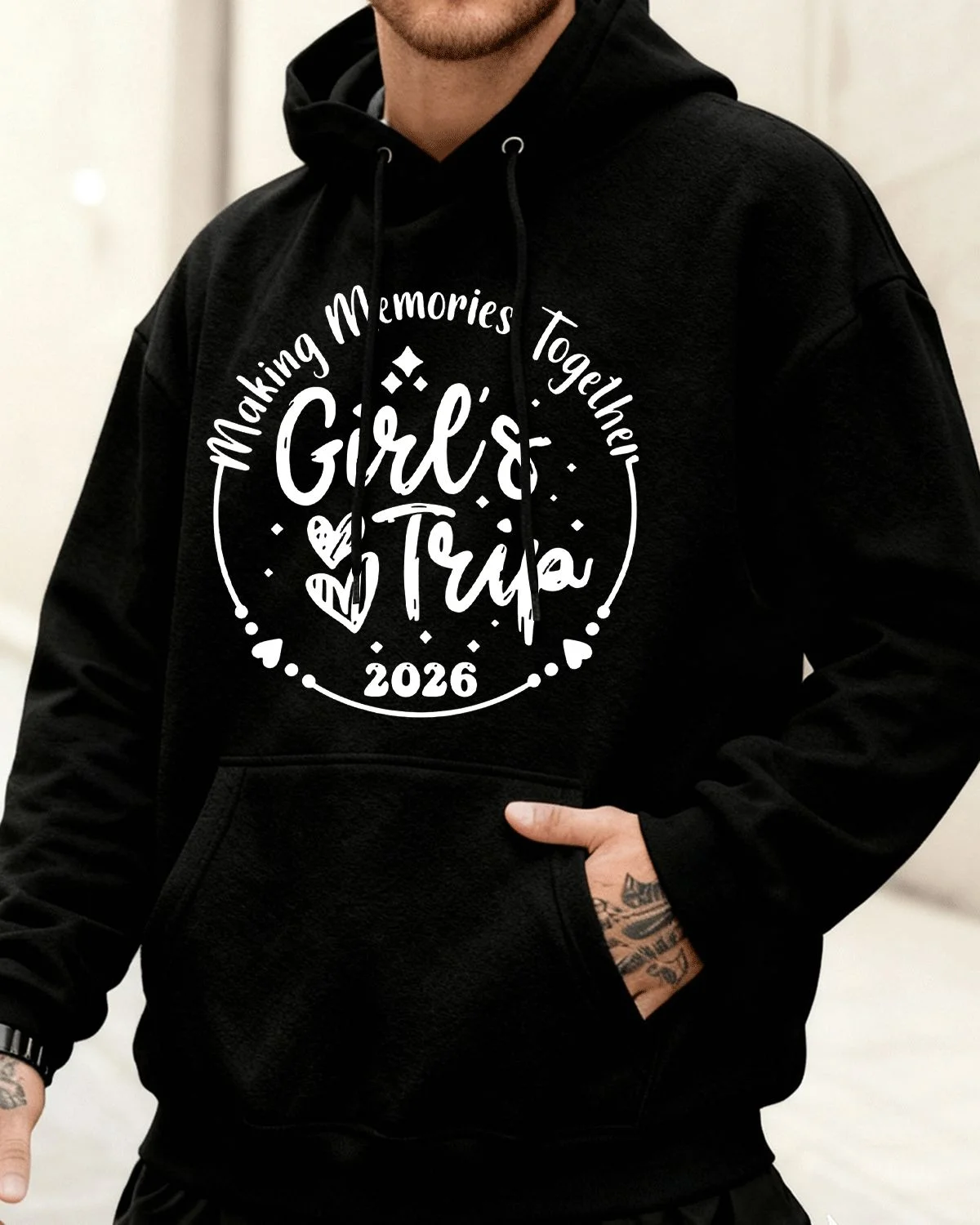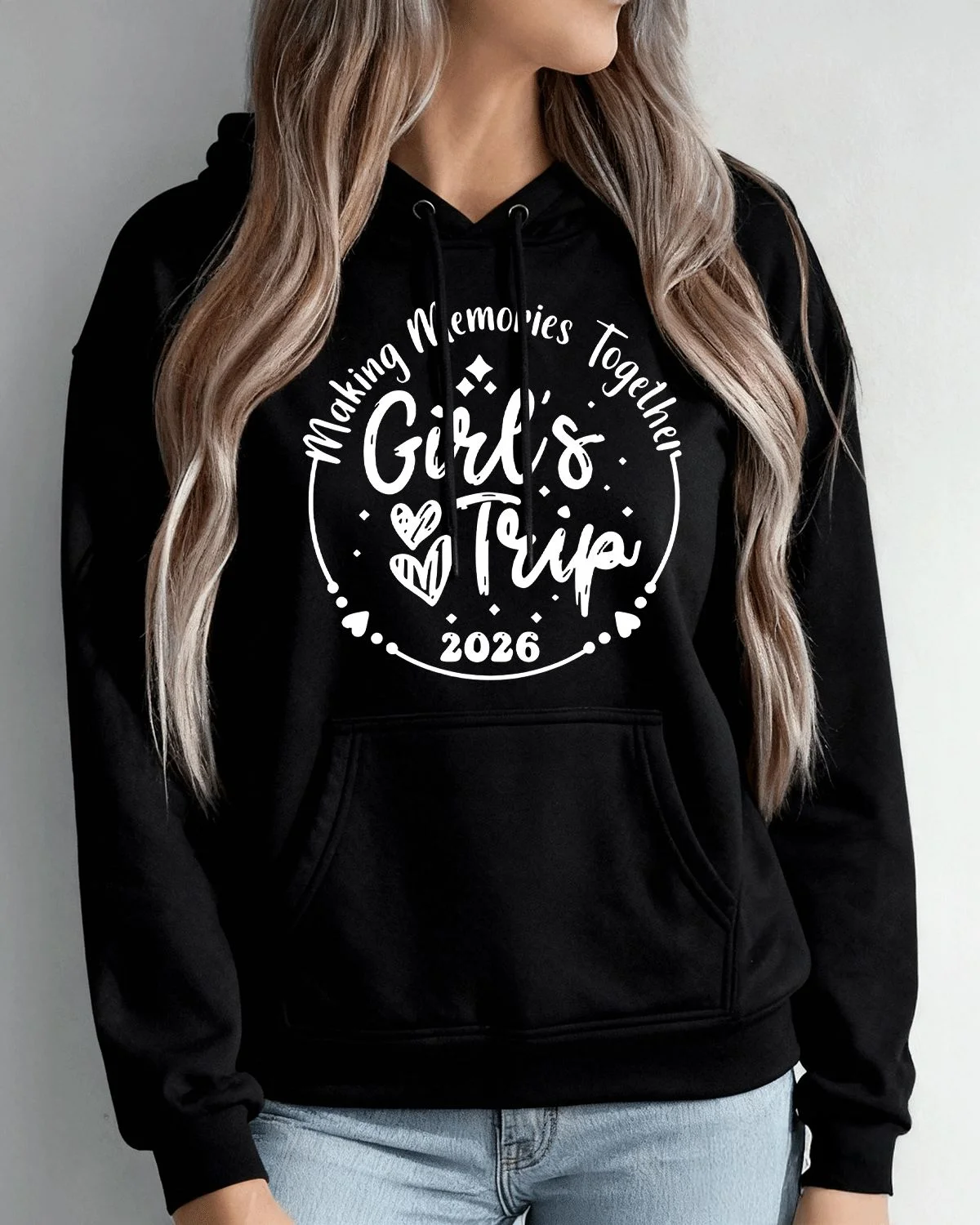 2026 New Year Making Memories Girl's Trip Cozy Graphic Hoodie for Men and Women - Casual Chic, Long Sleeve, Soft Fabric, Comfortable Fit