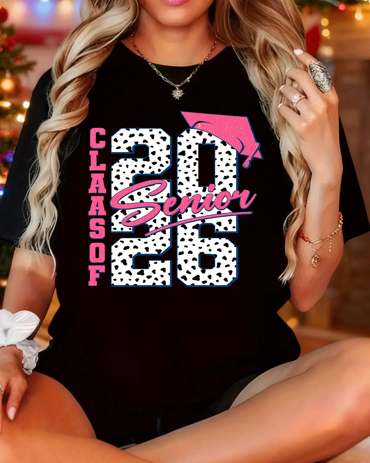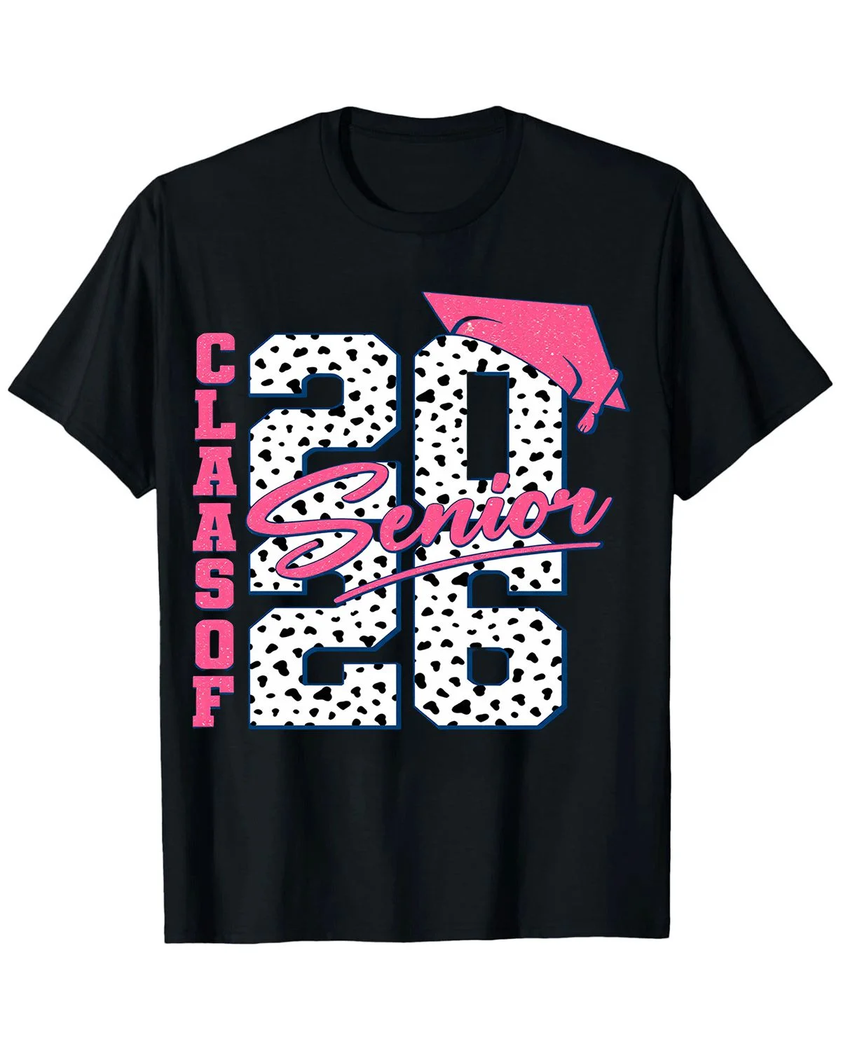 2026 New Year Senior Graduation Leopard Print Summer Cotton Graphic T Shirt - Casual Trendy, Short Sleeve, Soft Fabric, Comfortable Fit