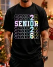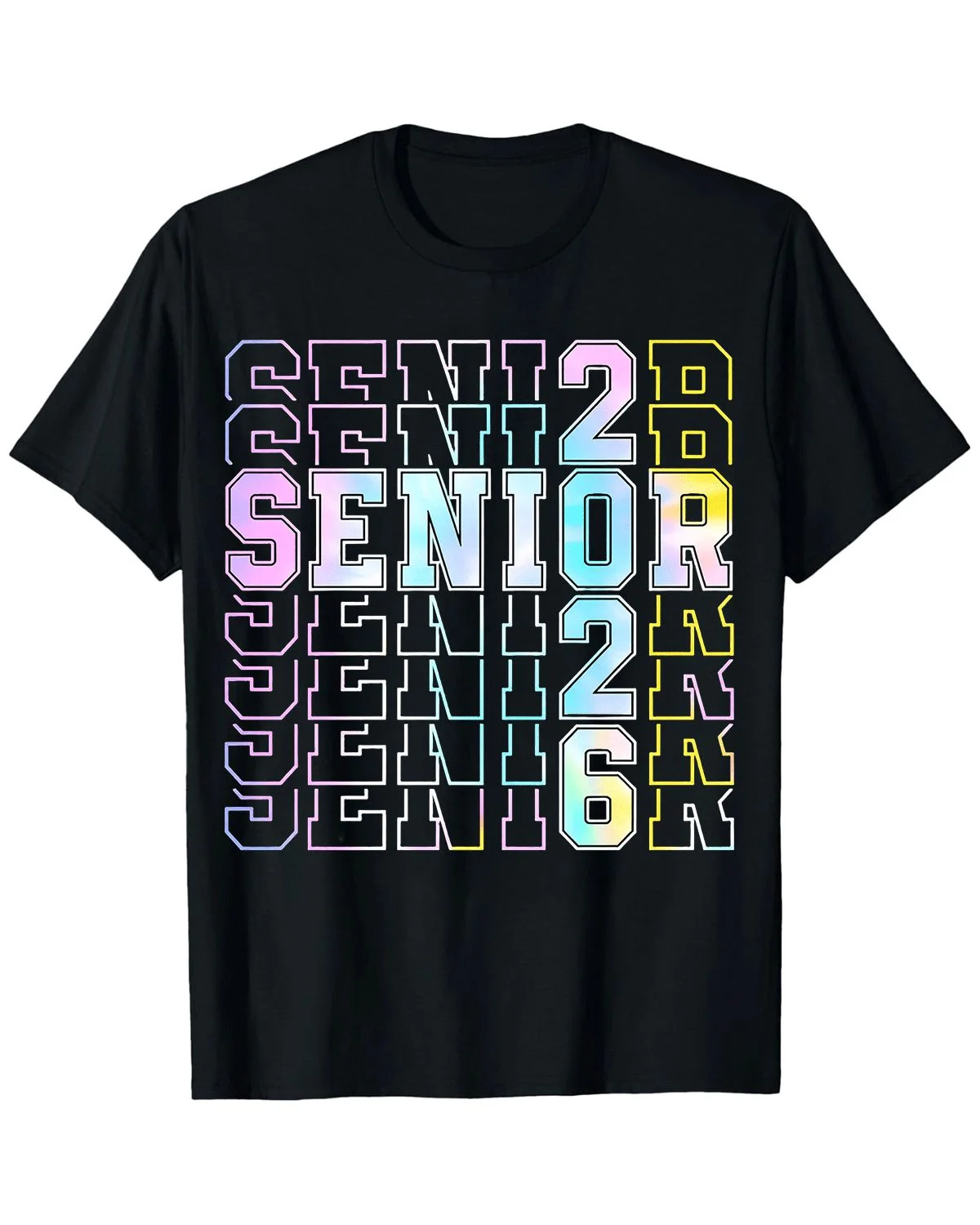 2026 New Year Senior Pastel Block Letters Summer Cotton Graphic T Shirt - Casual Retro, Short Sleeve, Soft Fabric, Comfortable Fit