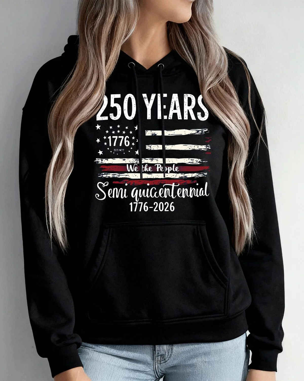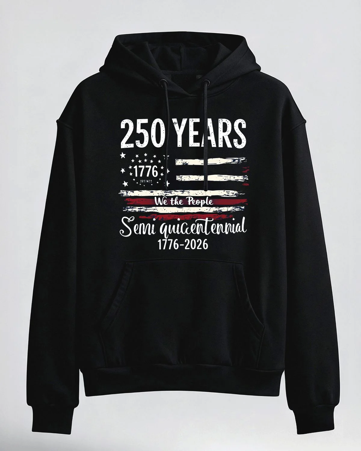2026 New Year USA Semiquicentennial Flag Cozy Graphic Hoodie for Men and Women - Vintage Classic, Long Sleeve, Soft Fabric, Comfortable Fit
