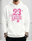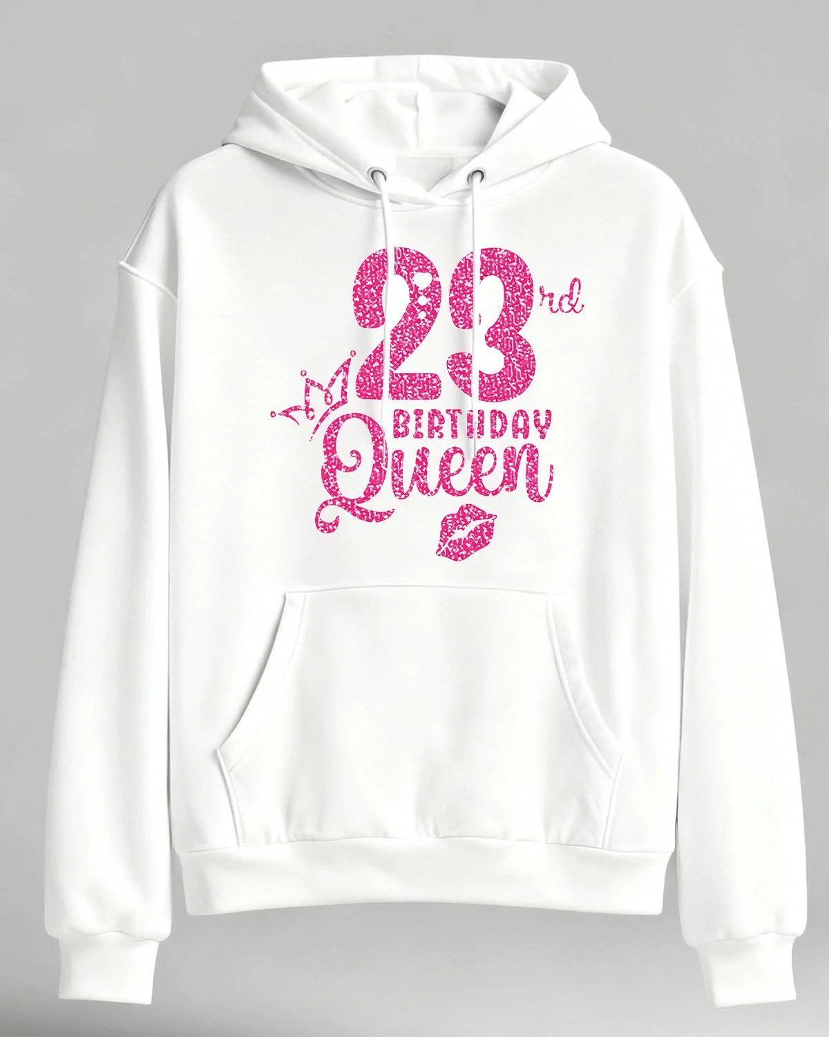 23rd Birthday Queen Crown and Lips Cozy Graphic Hoodie for Men and Women - Casual Chic, Long Sleeve, Soft Fabric, Comfortable Fit