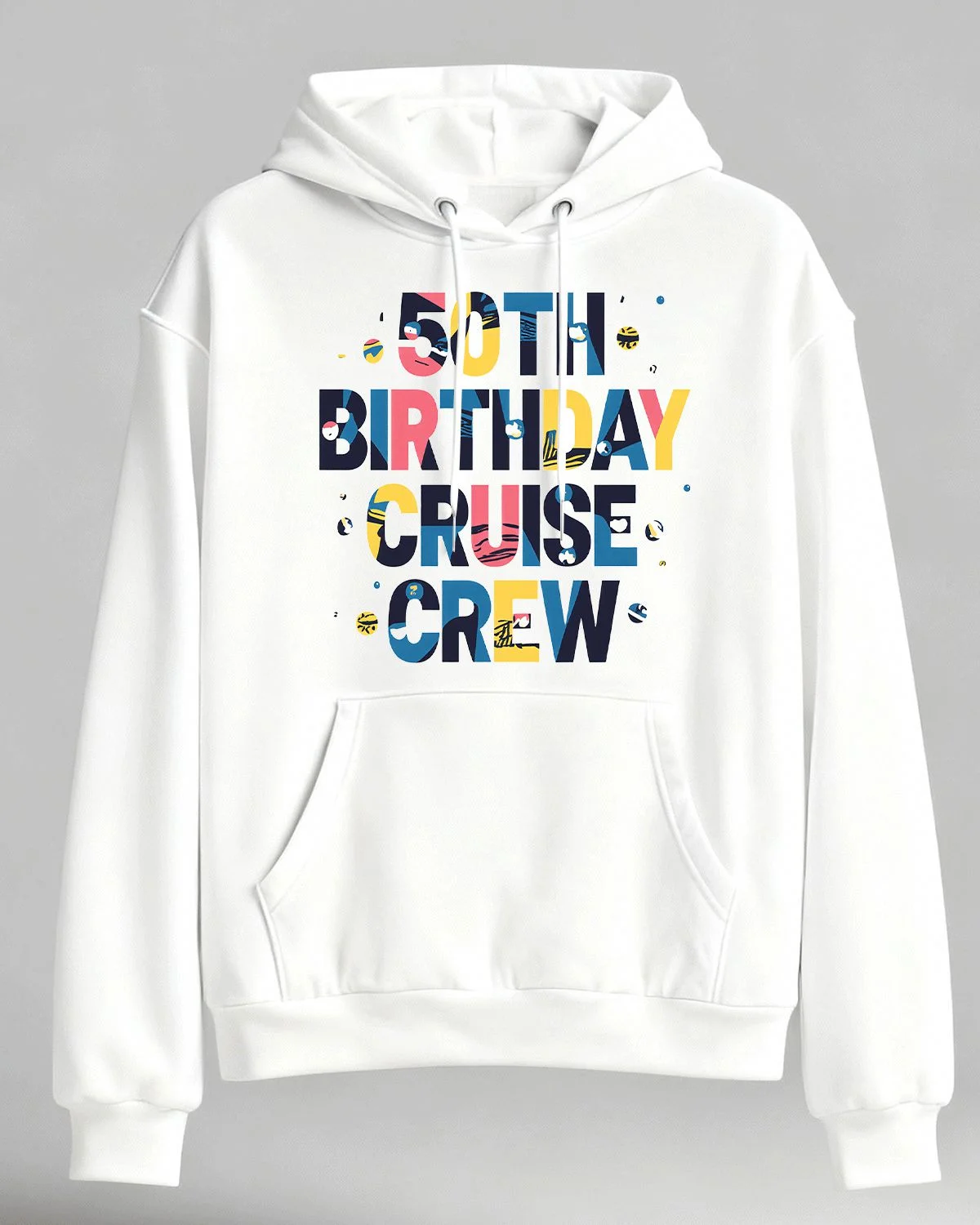 50th Birthday Cruise Crew Cozy Graphic Hoodie for Men and Women - Casual Trendy, Long Sleeve, Soft Fabric, Comfortable Fit