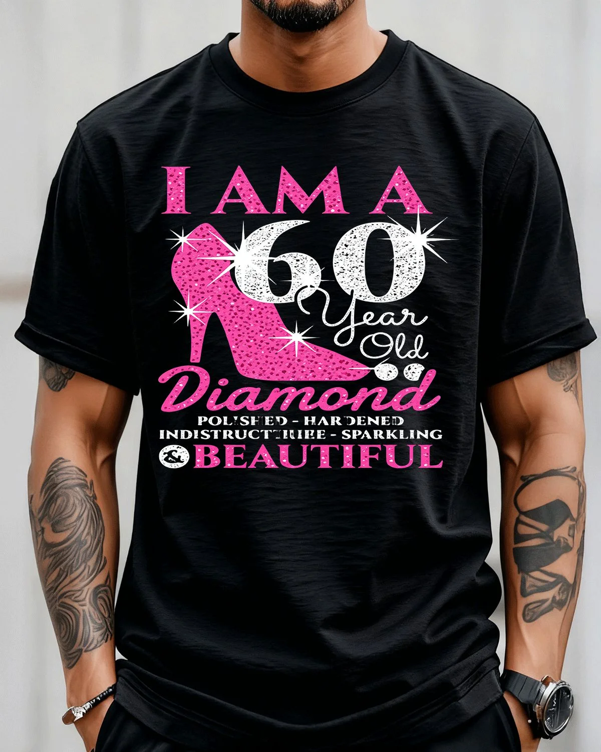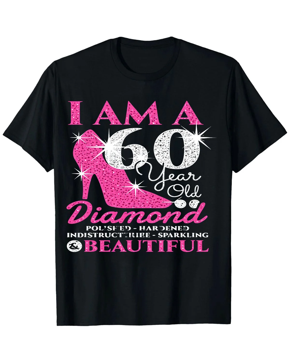 60 Year Old Birthday Diamond High Heel Summer Cotton Graphic T Shirt - Chic Vintage, Short Sleeve, Soft Fabric, Comfortable Fit