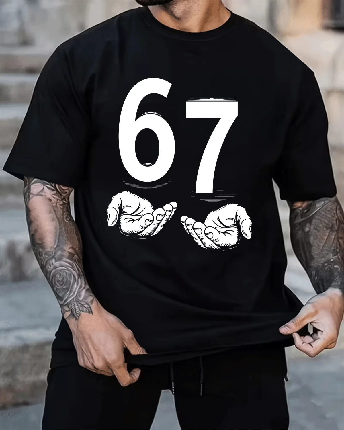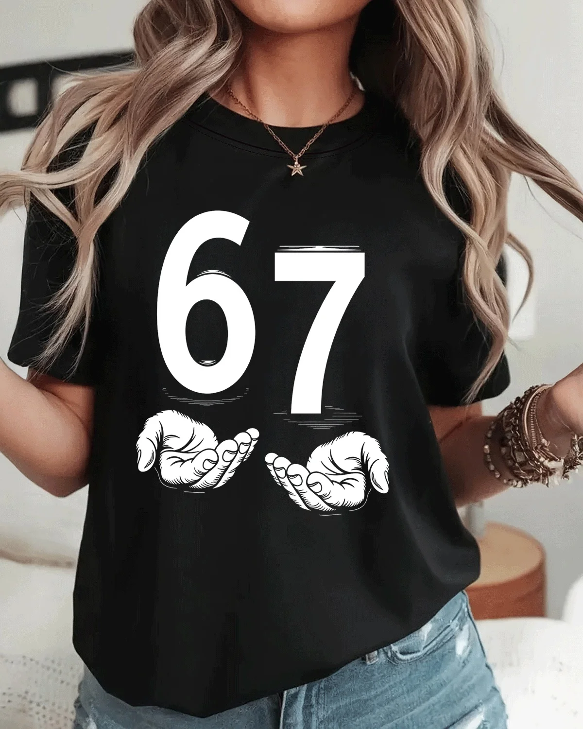 67 Hands Illustration Summer Cotton Graphic T Shirt-Casual Artistic,Short Sleeve,Soft Fabric,Comfortable Fit