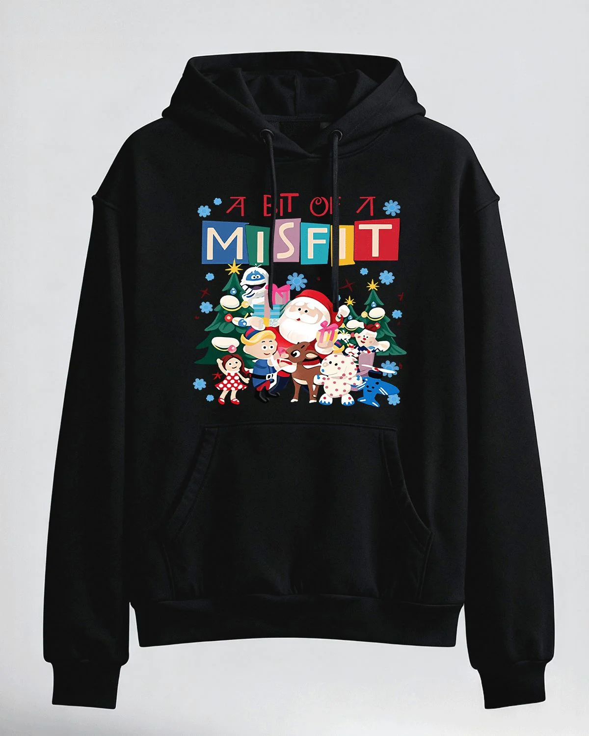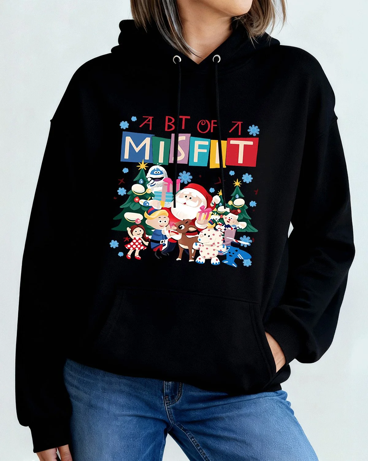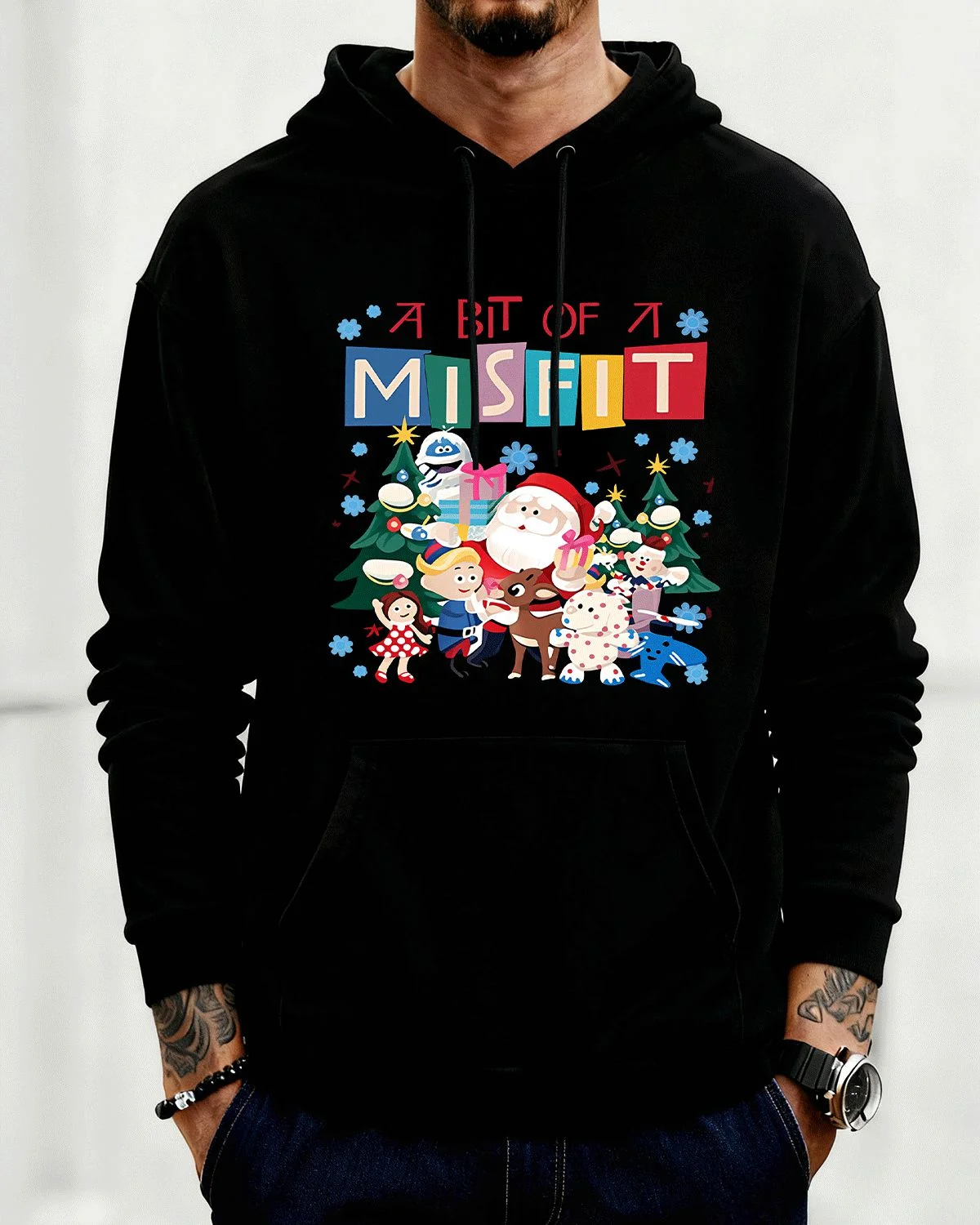 A Bit of Misfit Christmas Characters Cozy Graphic Hoodie for Men and Women - Casual Vintage, Long Sleeve, Soft Fabric, Comfortable Fit