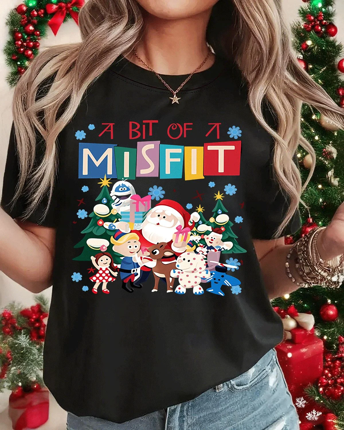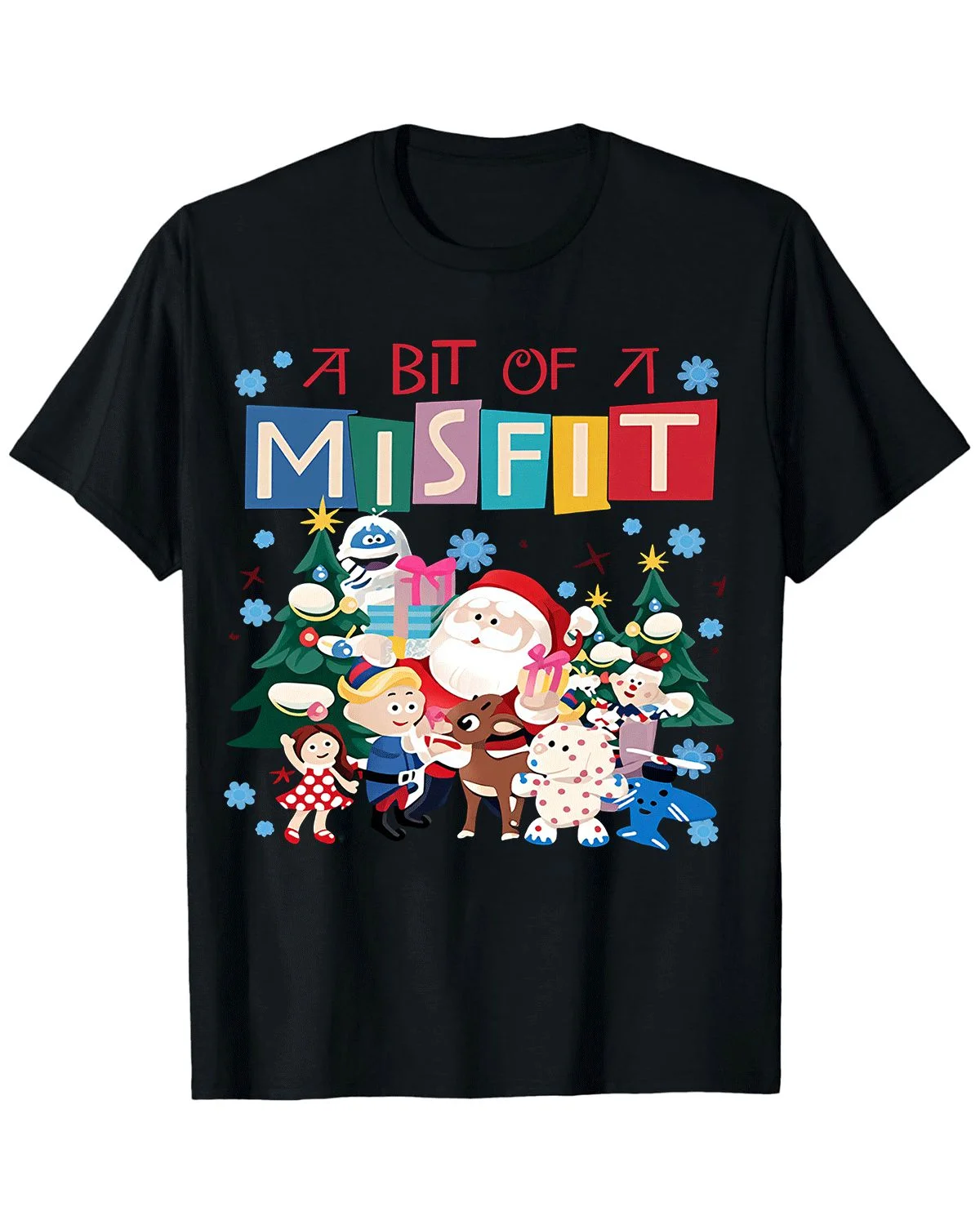 A Bit of Misfit Christmas Characters Summer Cotton Graphic T Shirt - Casual Vintage, Short Sleeve, Soft Fabric, Comfortable Fit