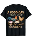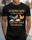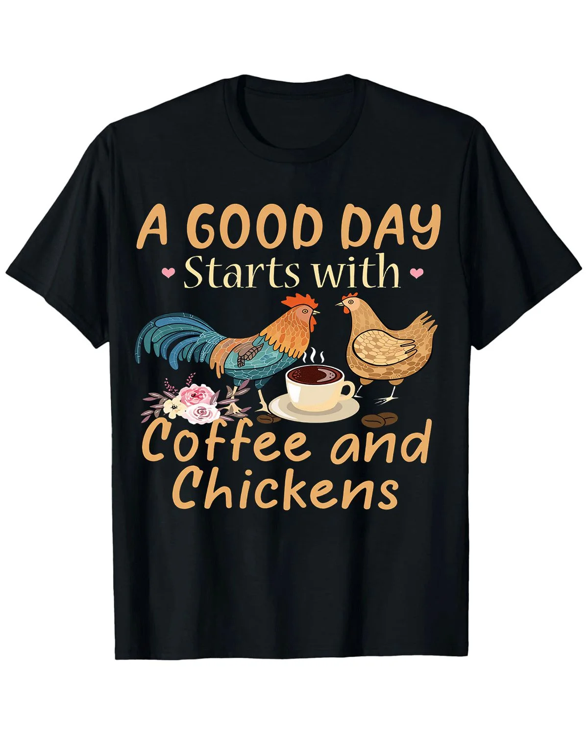 A Good Day Starts with Coffee and Chickens Summer Cotton Graphic T Shirt-Casual Vintage,Short Sleeve,Soft Fabric,Comfortable Fit