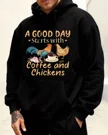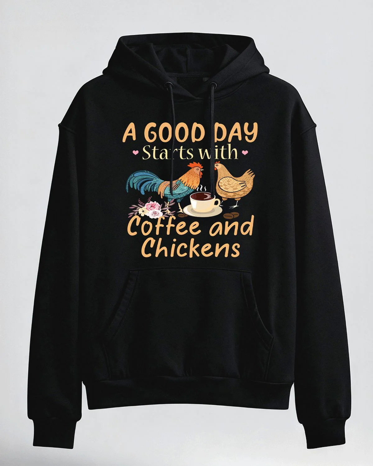 A Good Day Starts With Coffee and Chickens Summer Cozy Graphic Hoodie-Casual Vintage,Long Sleeve,Soft Fabric,Comfortable Fit