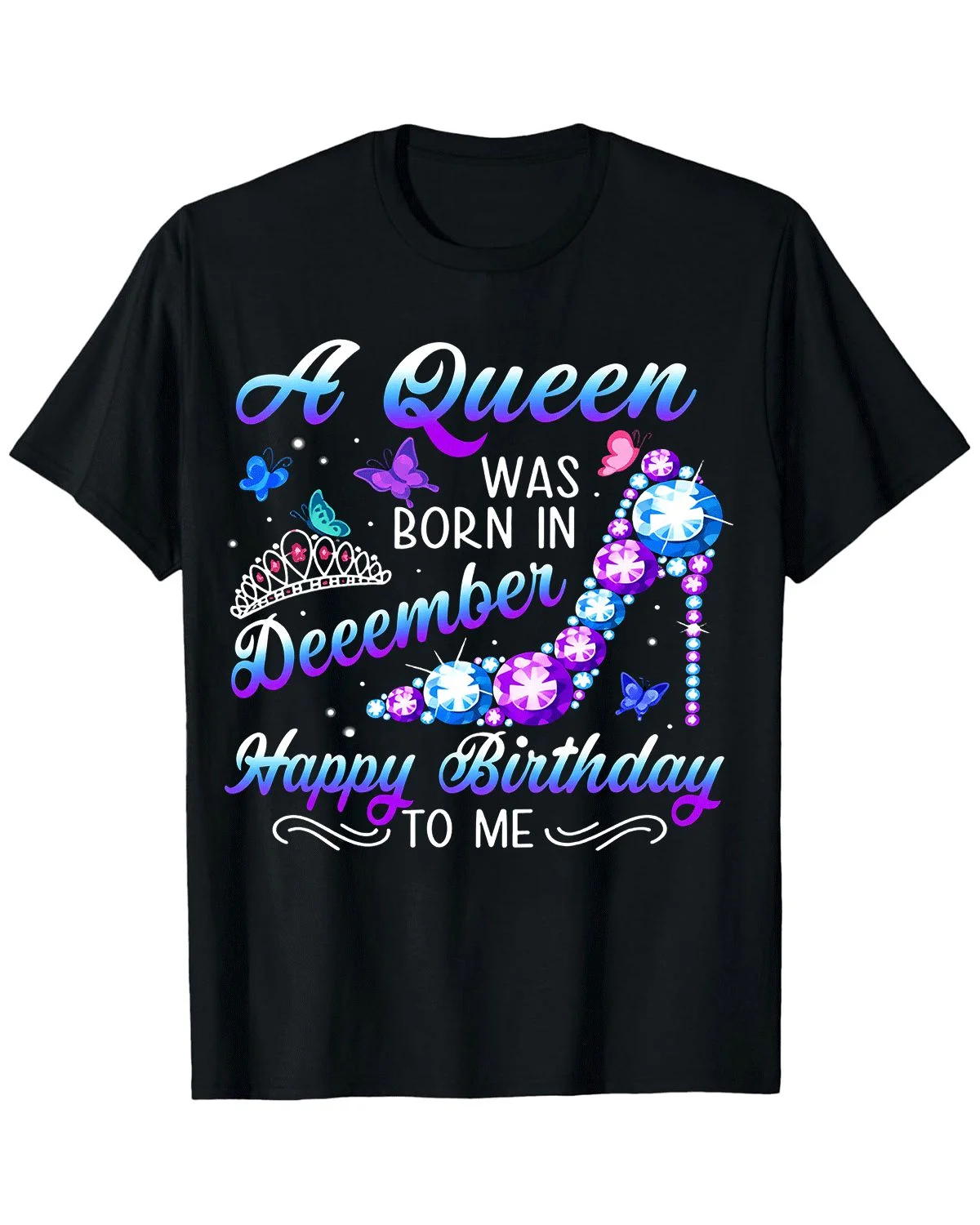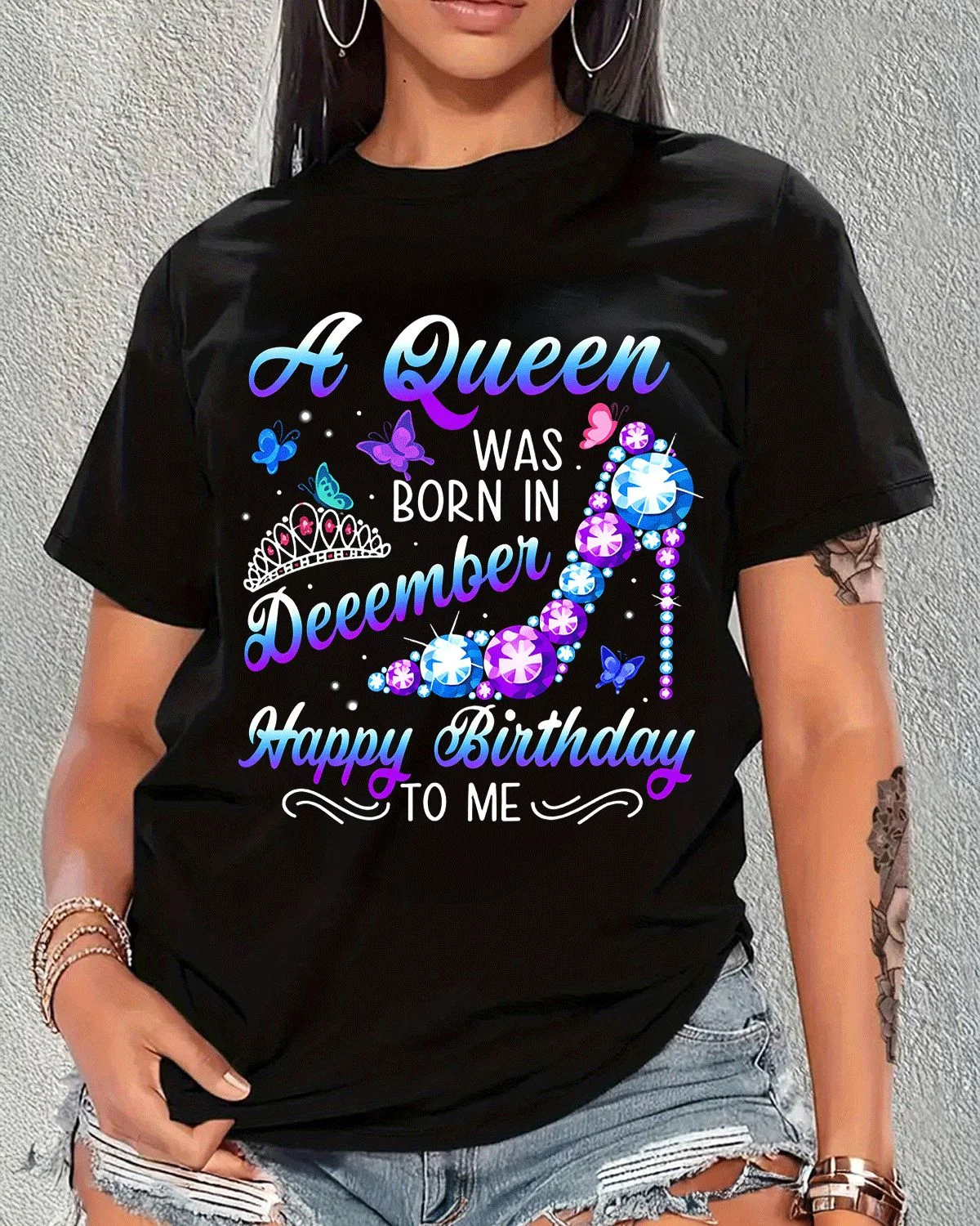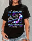 A Queen Born in December Happy Birthday Summer Cotton Graphic T Shirt - Casual Chic, Short Sleeve, Soft Fabric, Comfortable Fit
