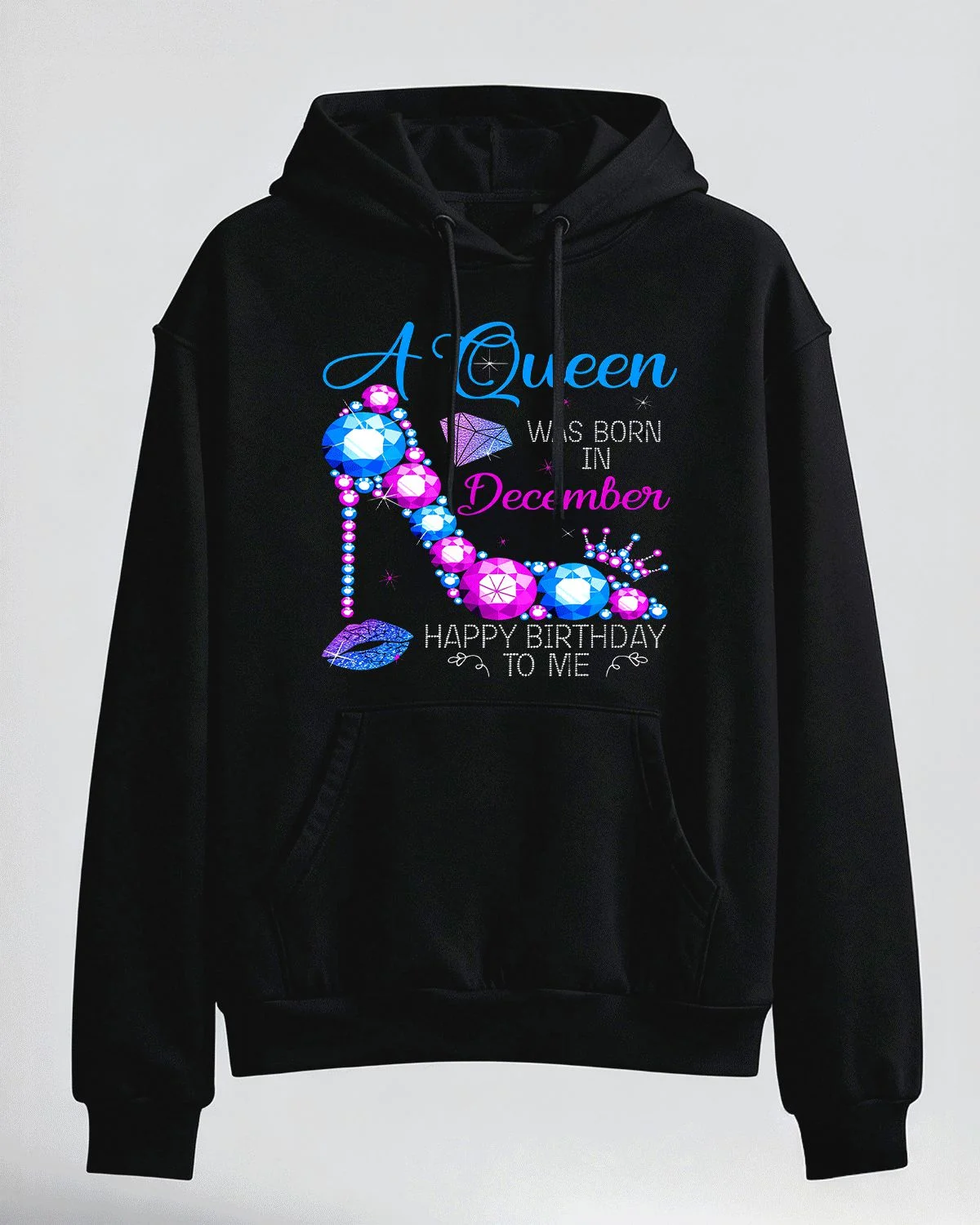 A Queen Mom Was Born In December Cozy Graphic Hoodie for Men and Women - Casual Chic, Long Sleeve, Soft Fabric, Comfortable Fit