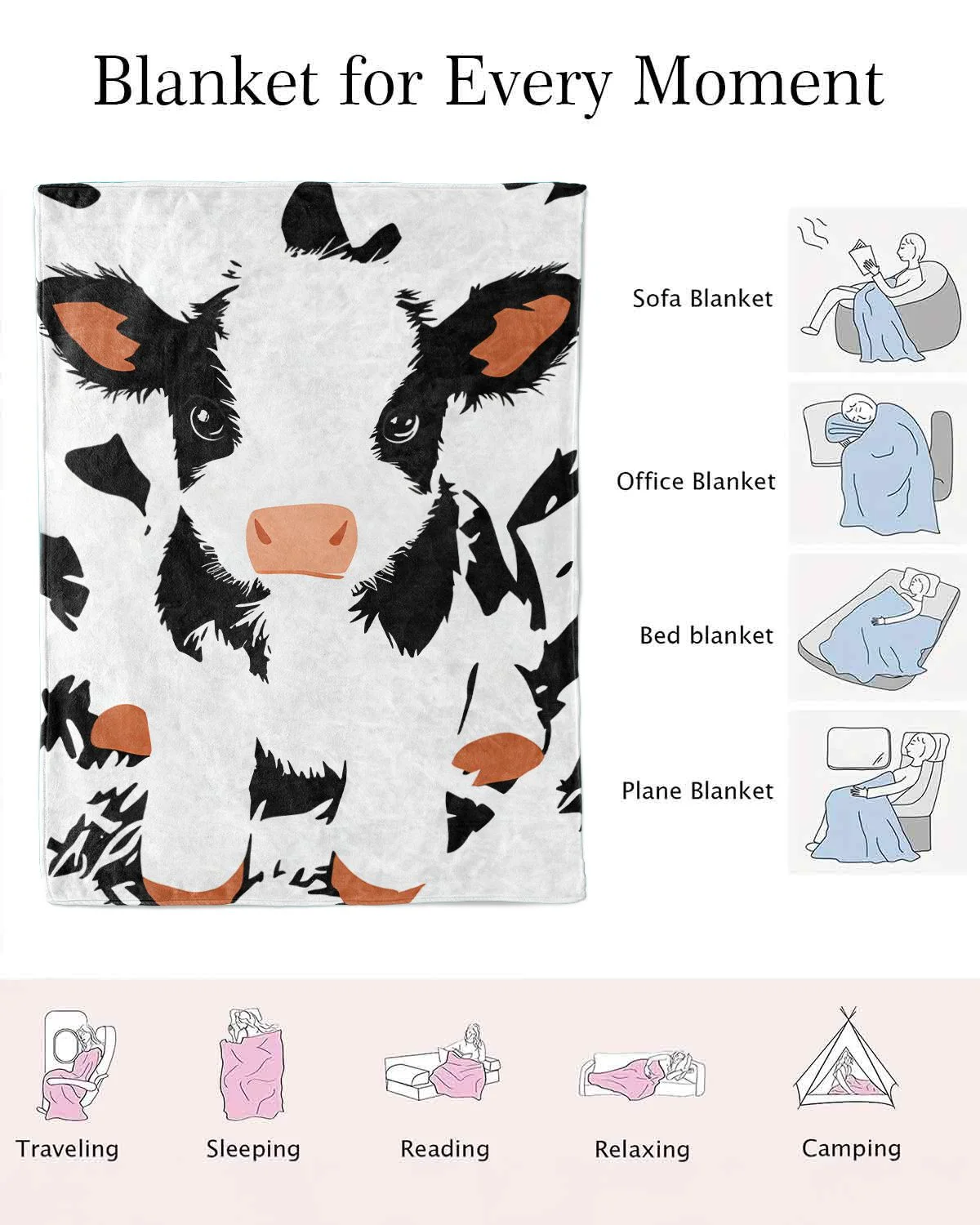 Adorable Baby Cow Love Gift Cozy Flannel Blanket-Cute Modern,Super Soft,Warm,Plush,For Couch,Bedroom Use
