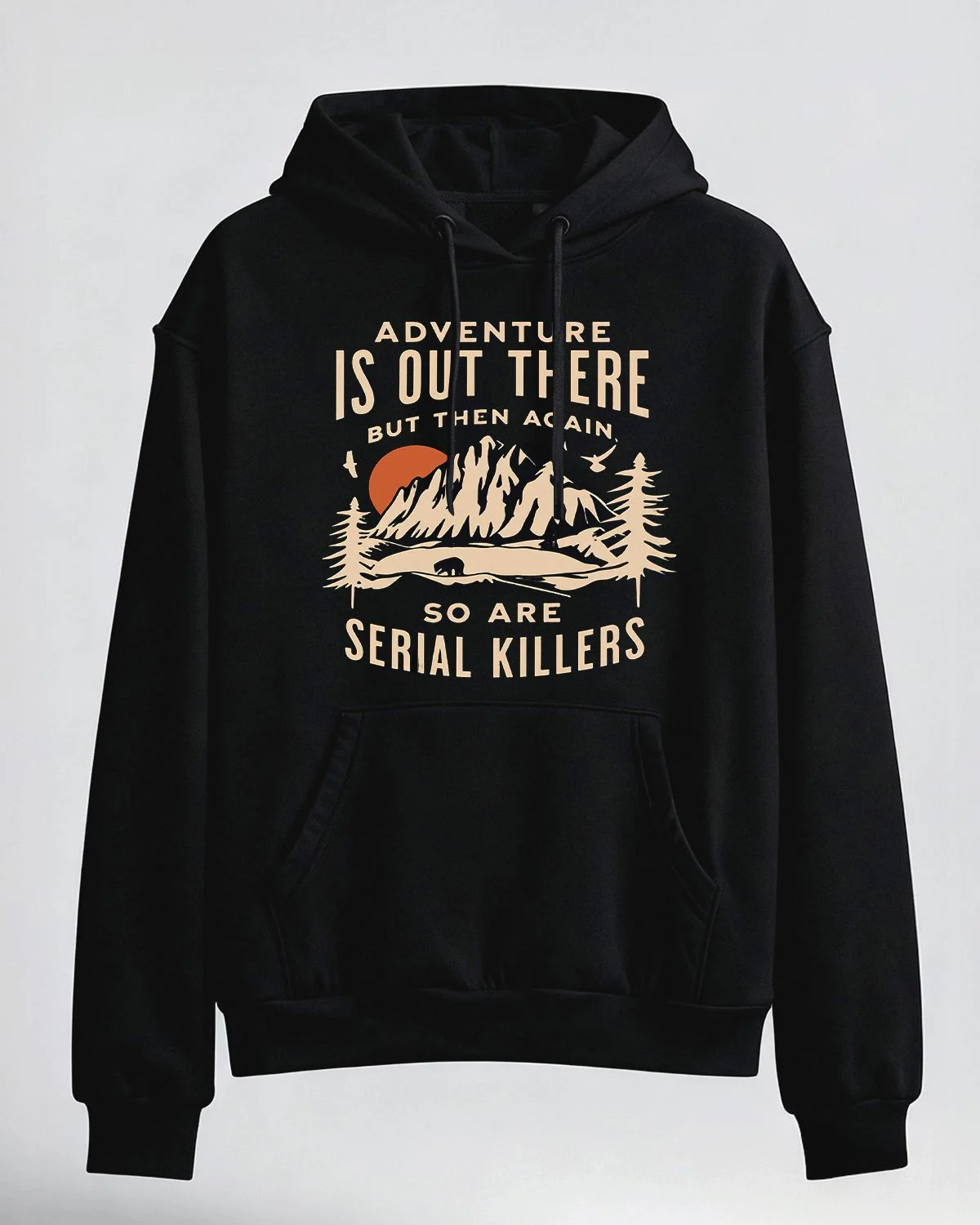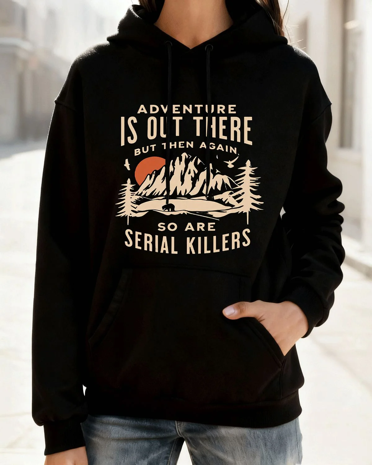 Adventure Is Out There Wilderness Humor Summer Cozy Graphic Hoodie-Casual Vintage,Long Sleeve,Soft Fabric,Comfortable Fit