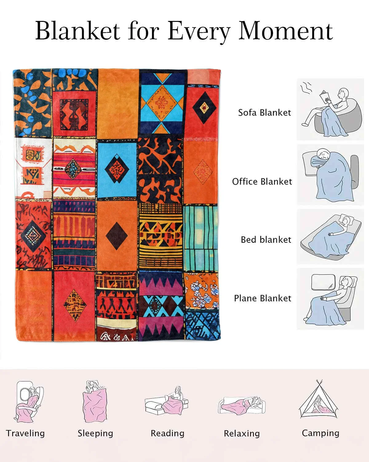 African Tribal Love and Blessings Gift Blanket-Cozy Classic,Warm,Plush,Durable,For Sofa,Bedroom Use