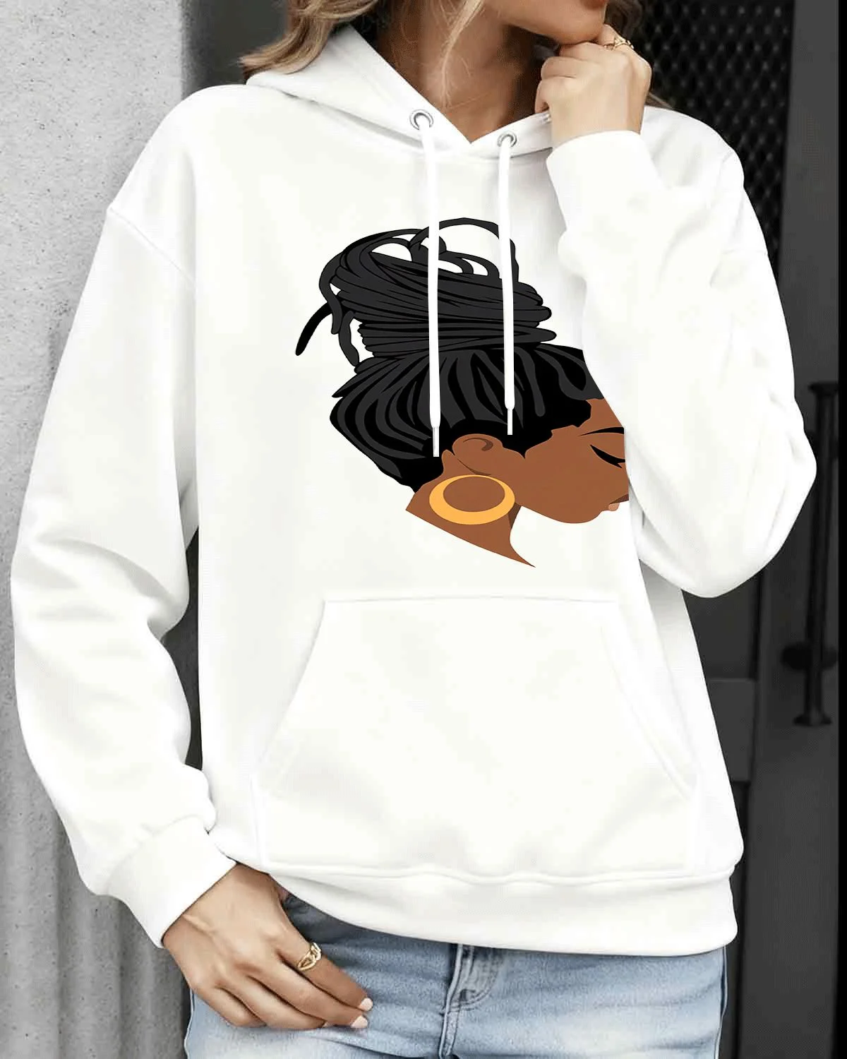 Afro Woman Profile Illustration Cozy Graphic Hoodie for Men and Women - Artistic Vintage, Long Sleeve, Soft Fabric, Comfortable Fit