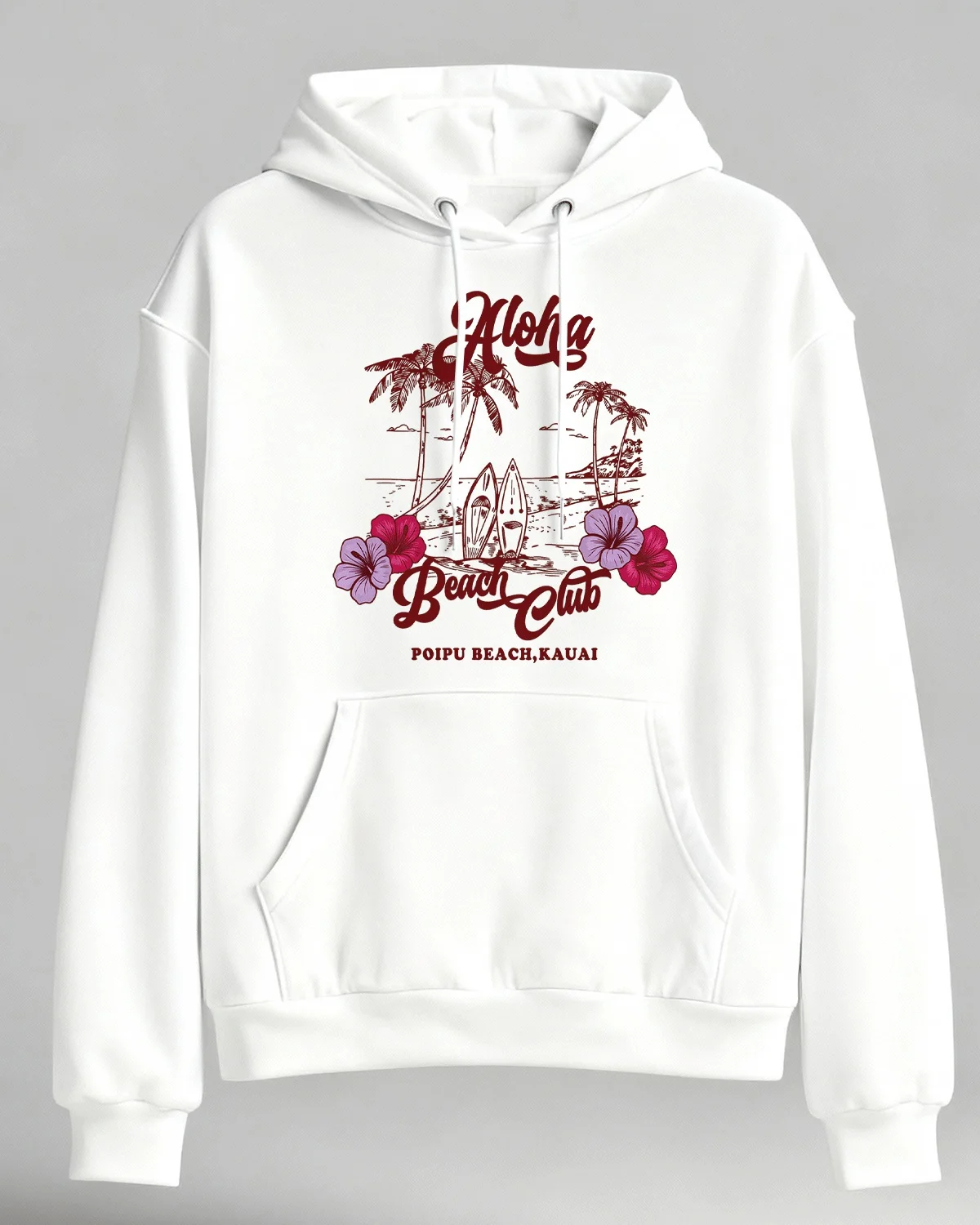 Aloha Beach Club Poipu Beach Kauai Cozy Cotton Graphic Hoodie-Casual Vintage,Long Sleeves,Soft Fabric,Comfortable Fit