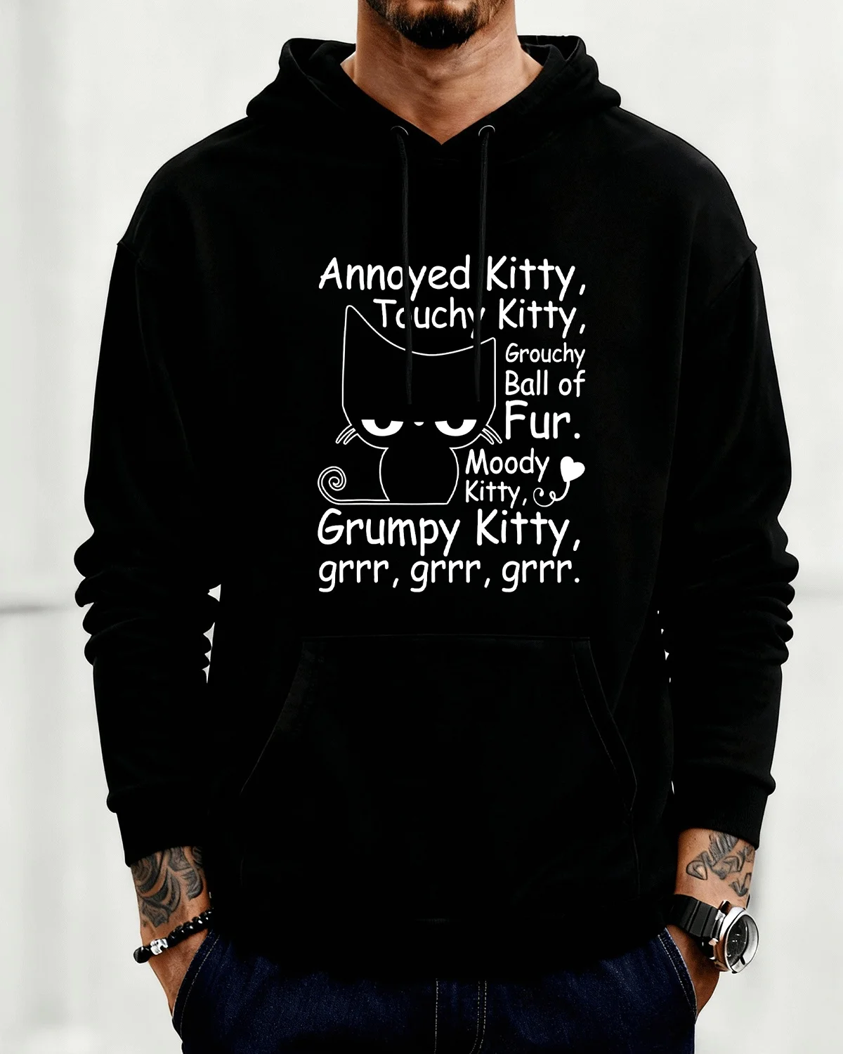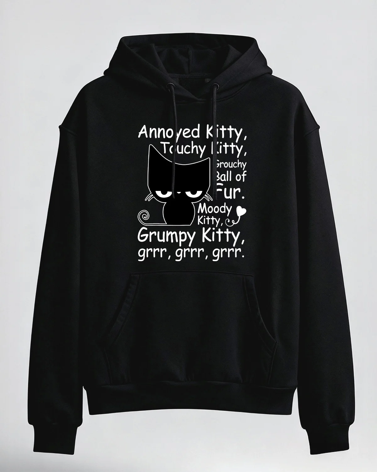 Annoyed Kitty Grumpy Cat Cozy Cotton Graphic Hoodie-Casual Funny,Long Sleeves,Soft Fabric,Comfortable Fit