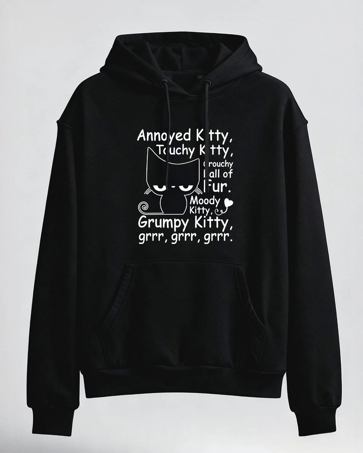 Annoyed Touchy Grouchy Moody Grumpy Kitty Cozy Cotton Graphic Hoodie with Pocket-Funny Retro,Long Sleeve,Soft Fabric,Comfortable Fit