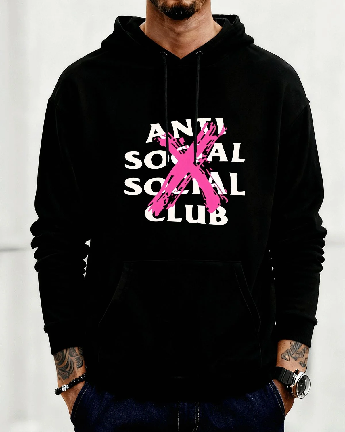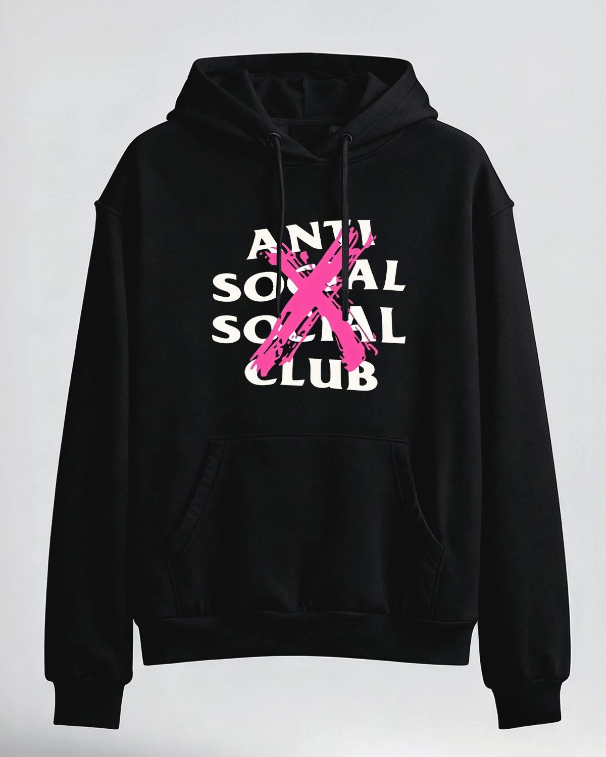 Anti Social Social Club Pink X Cozy Cotton Graphic Hoodie with Pocket-Casual Urban,Long Sleeve,Soft Fabric,Comfortable Fit