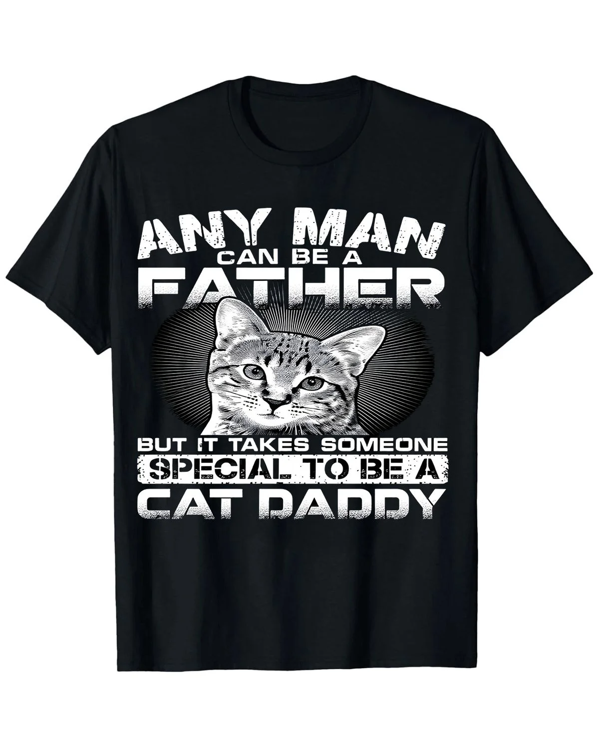 Any Man Can Be a Father Cat Daddy Summer Cotton Graphic T Shirt-Casual Vintage,Short Sleeve,Soft Fabric,Comfortable Fit