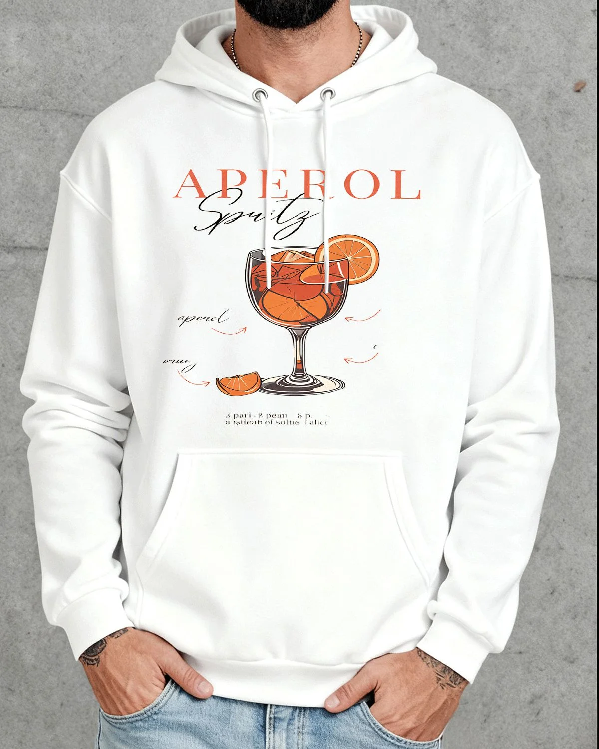 Aperol Spritz Cocktail with Orange Garnish Cozy Graphic Hoodie for Men and Women - Casual Vintage, Long Sleeve, Soft Fabric, Comfortable Fit