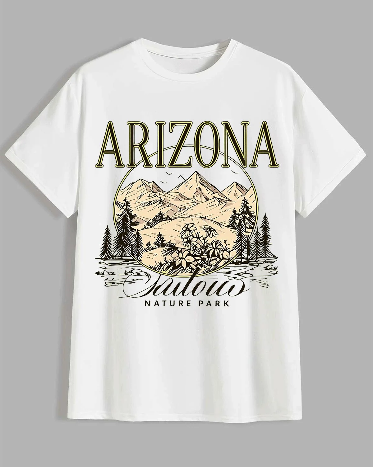 Arizona Nature Park Mountain Landscape Summer Cotton Graphic T Shirt - Vintage Artistic, Short Sleeve, Soft Fabric, Comfortable Fit