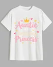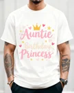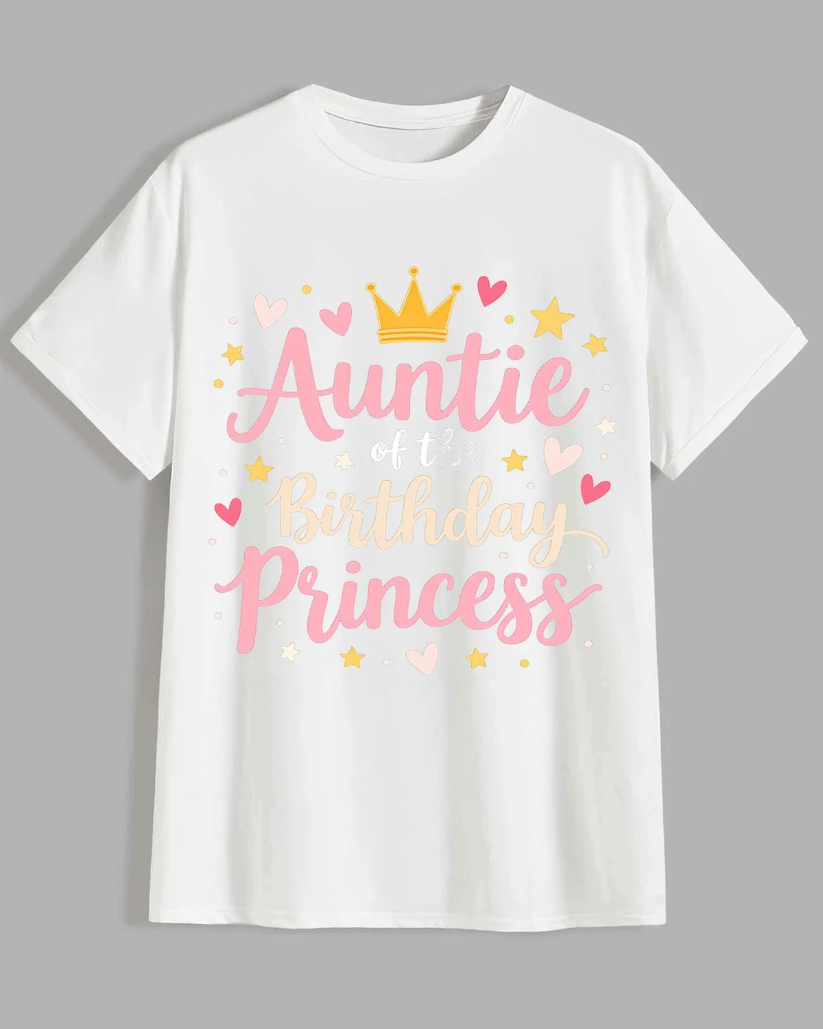 Auntie of the Birthday Princess with Crown and Stars Summer Cotton Graphic T Shirt - Casual Chic, Short Sleeve, Soft Fabric, Comfortable Fit
