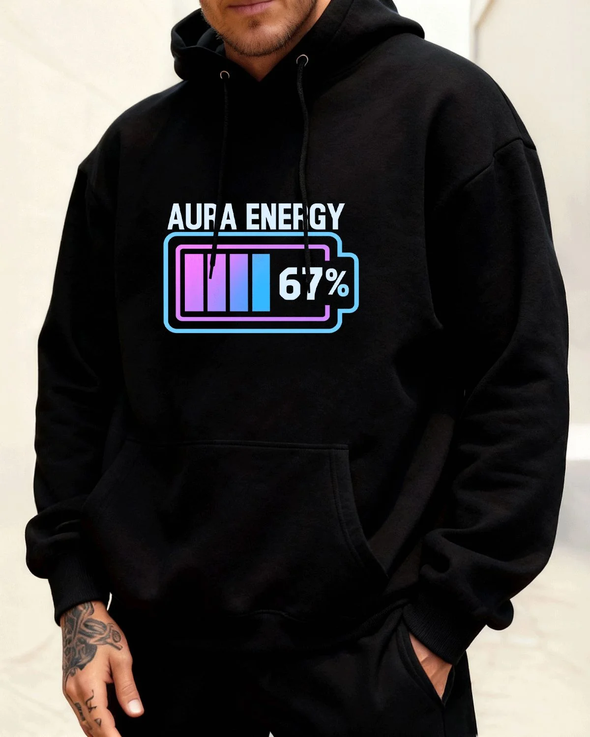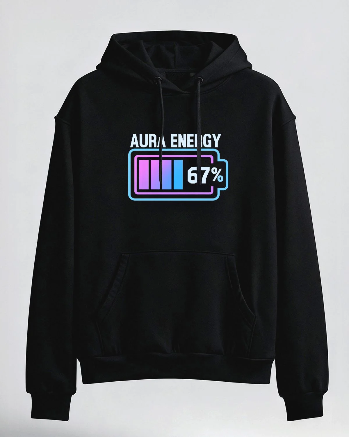 Aura Energy 67 Percent Battery Gauge Cozy Cotton Graphic Hoodie with Pocket-Retro Funny,Long Sleeve,Soft Fabric,Comfortable Fit