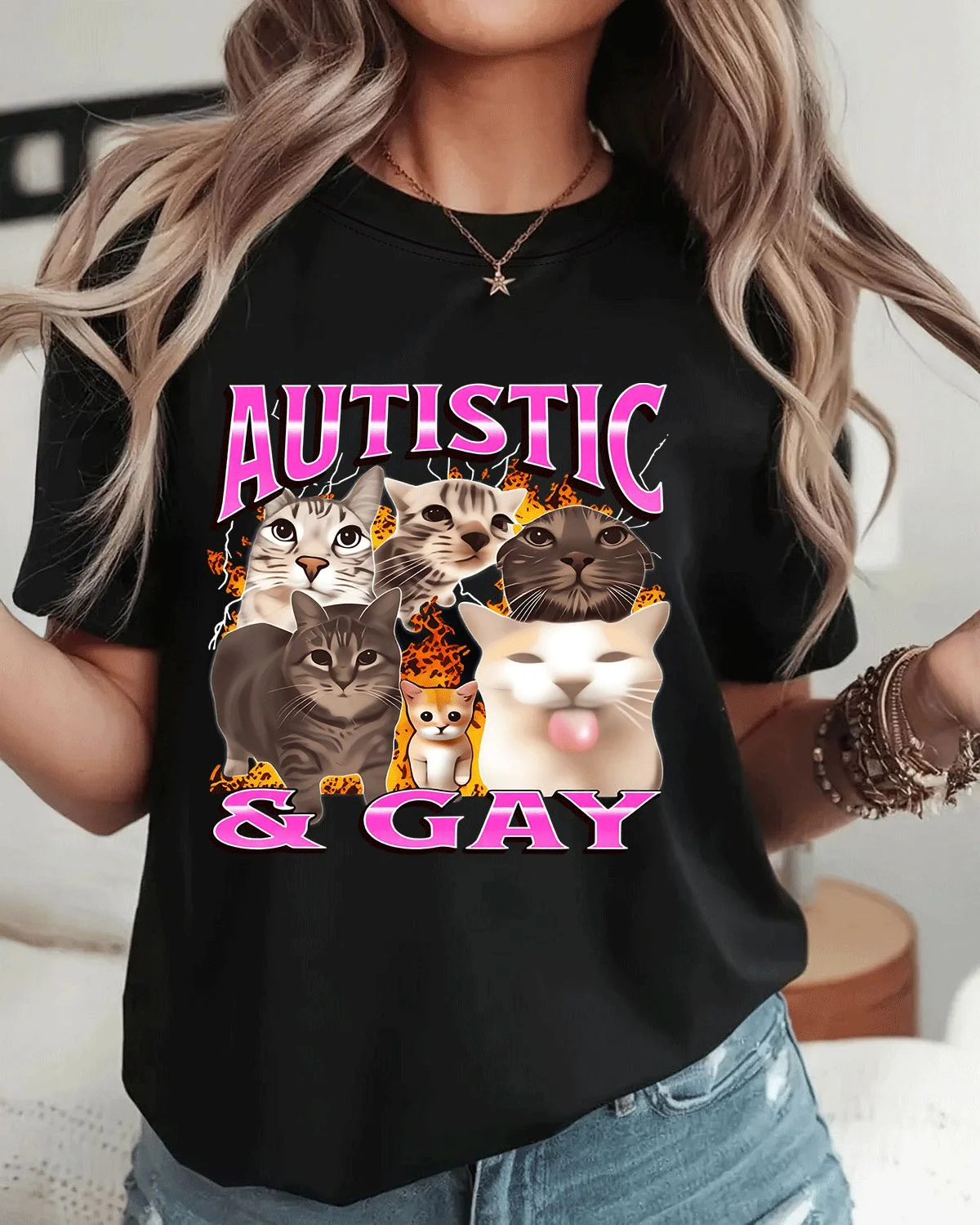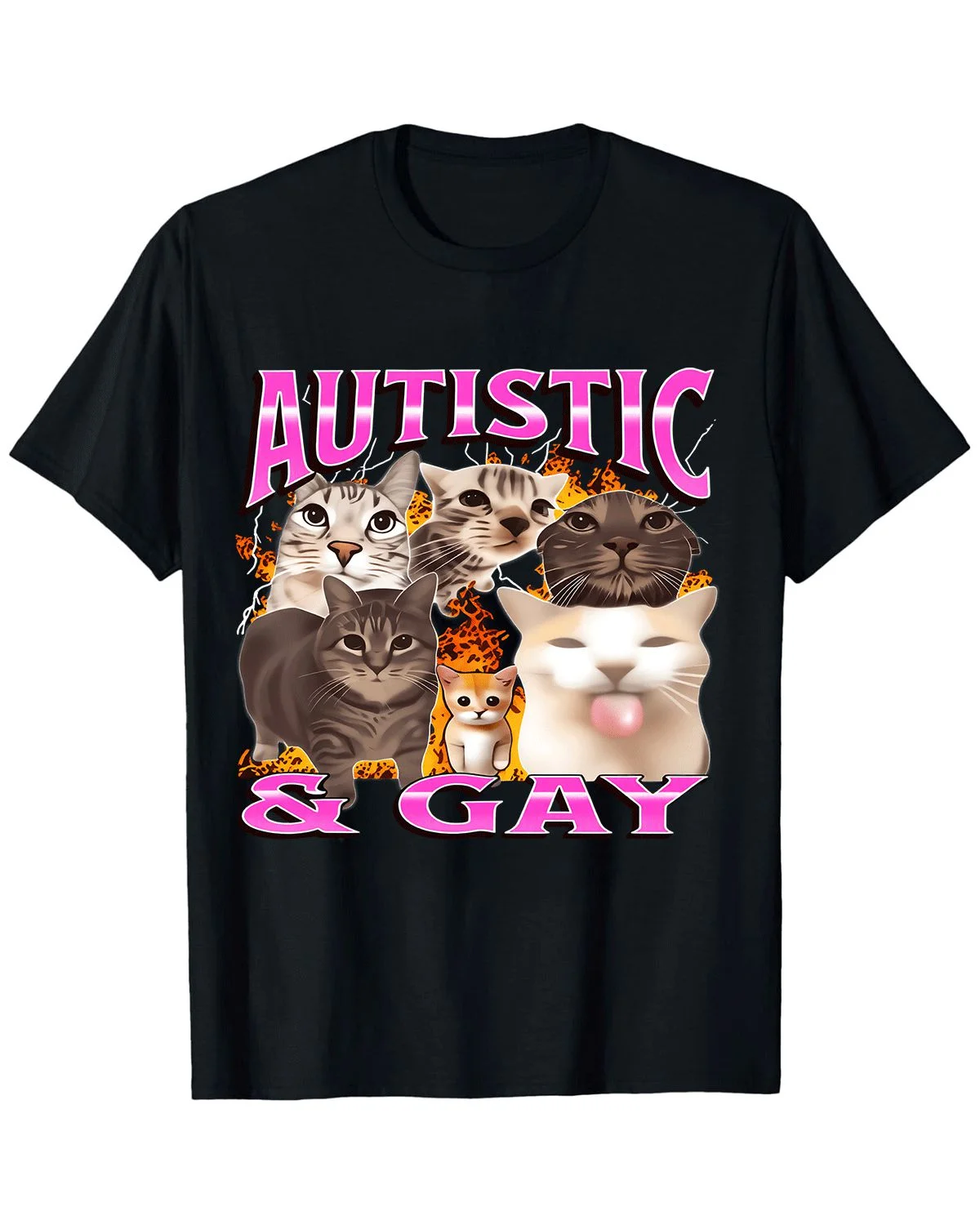 Autistic and Gay Cats Summer Cotton Graphic T Shirt - Casual Artistic,Short Sleeve,Soft Fabric,Comfortable Fit